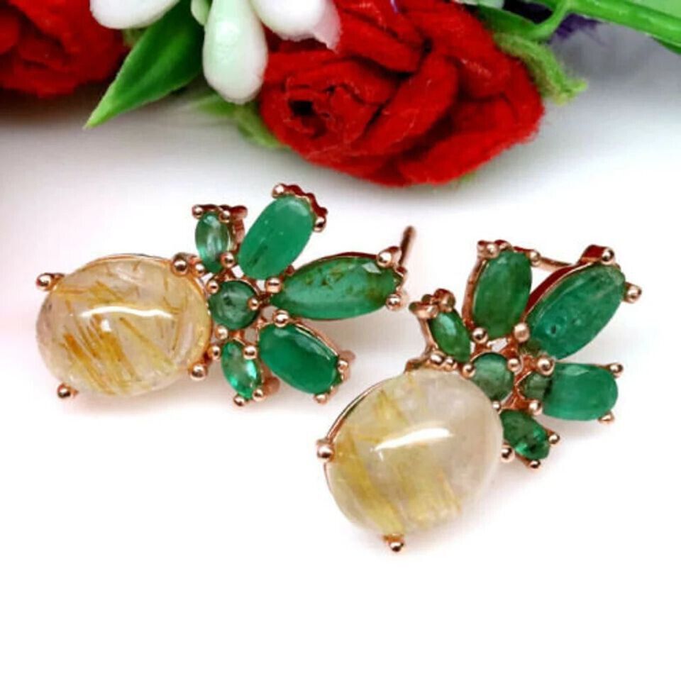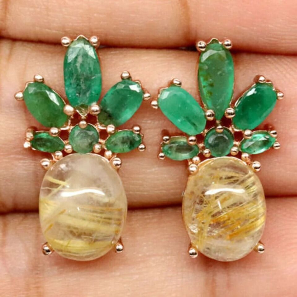 Wunderschöne echte Smaragde Ohrringe mit Rutile Quarz