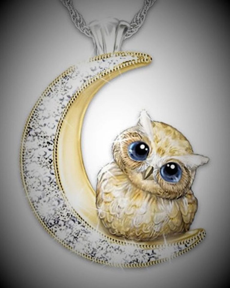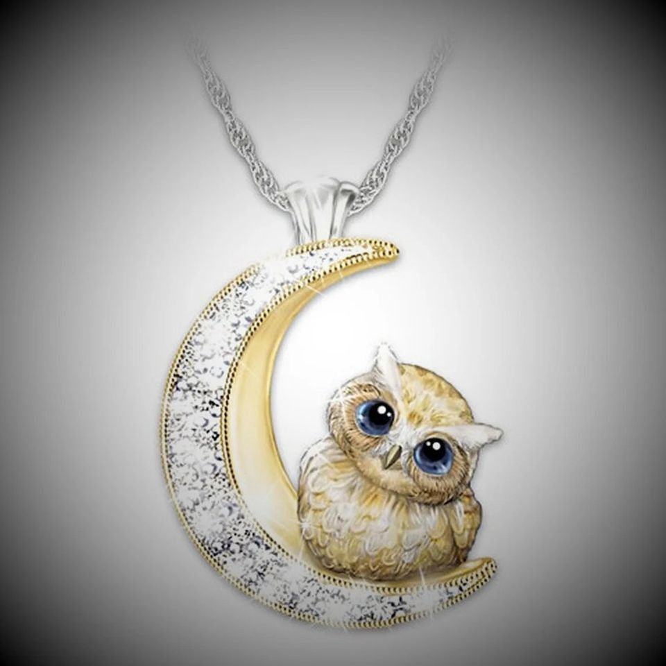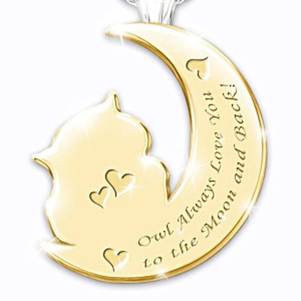 Wunderschöne niedliche Mond Kette mit Eule in Gold Plated (KK101)