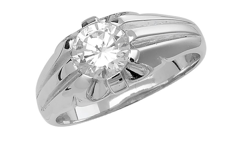Wunderschöner 925 Sterling Silber Solitär Herren - Ring mit Zirkonia
