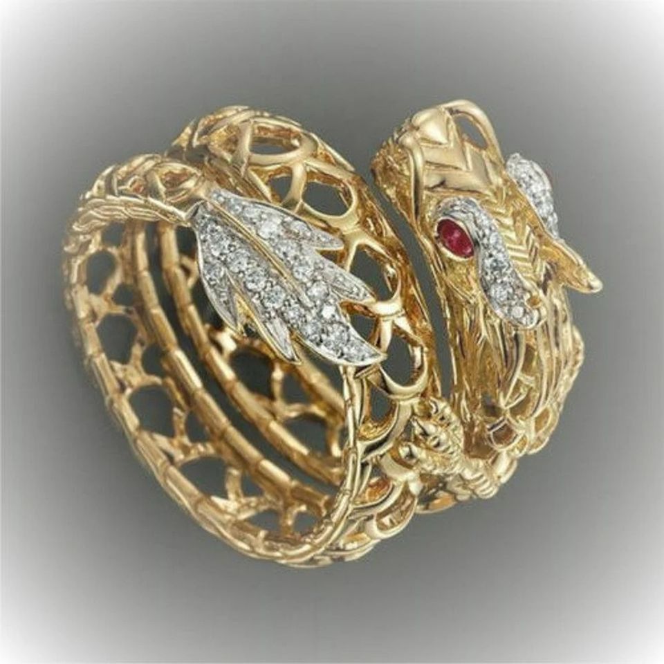 Wunderschöner Damen Drachenring Gold Plated