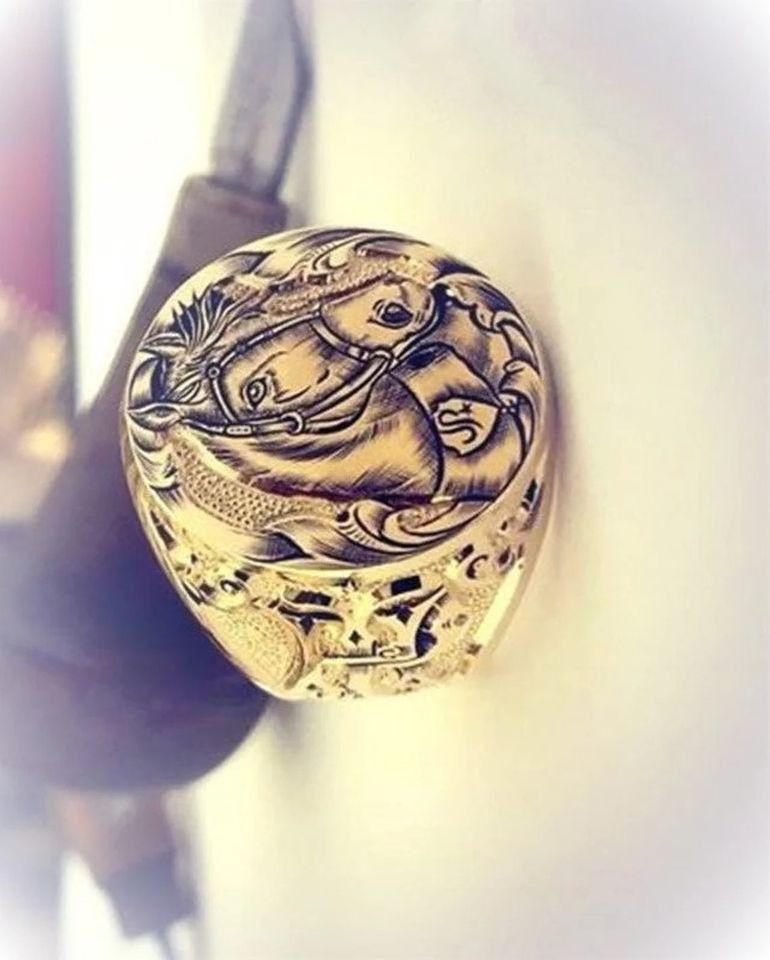 Brandneuer superstarker Pferdekopf Damen Herren Ring Ein absolutes Hingucker Stück Fashion Style Handmade Men Women Vintage Edelstahl mit Gold plated überzogen Die Innenseite des Ringes ist hohl