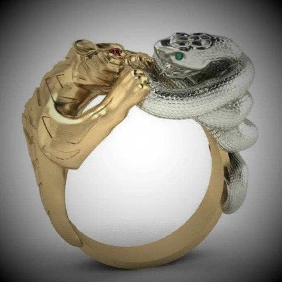 Wunderschöner Unisex Cobra/ Tiger Ring Gold Plated (CM641)