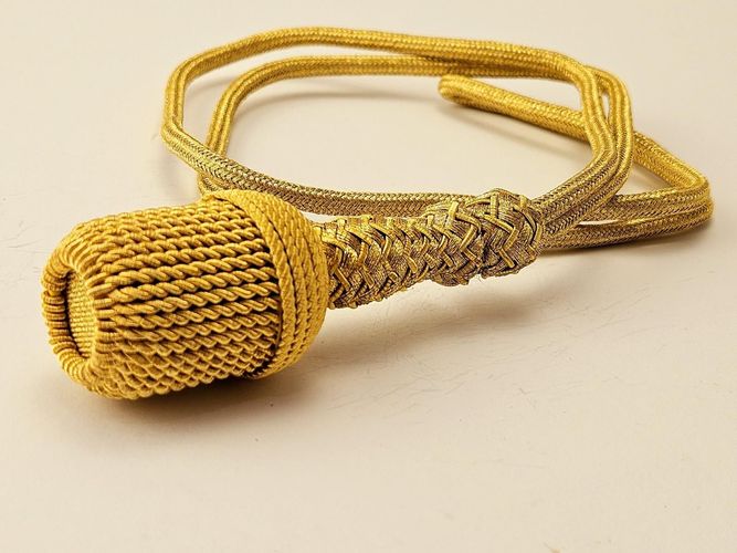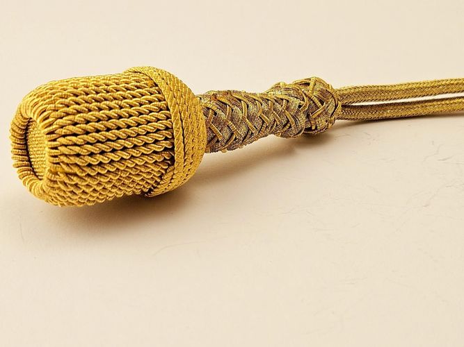 WW2 goldenes Portepee zu KM Offiziersdolch M38 WK2 Faustriemen Portepee für einen Offizier der deutschen Kriegsmarine passend zum Kriegsmarine Offiziersdolch M1938 goldfarbige Ausführung hochwertige Sammleranfertigung – ein gutes Ersatzstück zum oftmals fehlenden und oder brüchigen Original WW