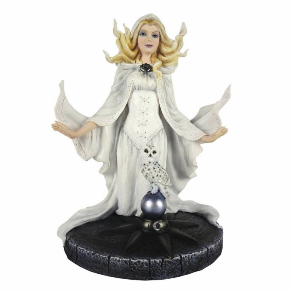 Wynne - weiße Hexe mit weisser Eule im Wind (Gr. 28x21x19cm)