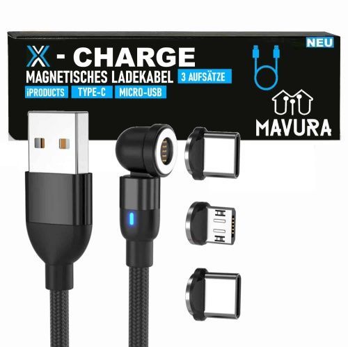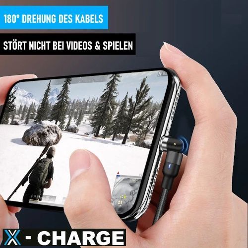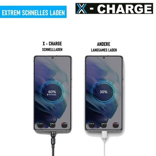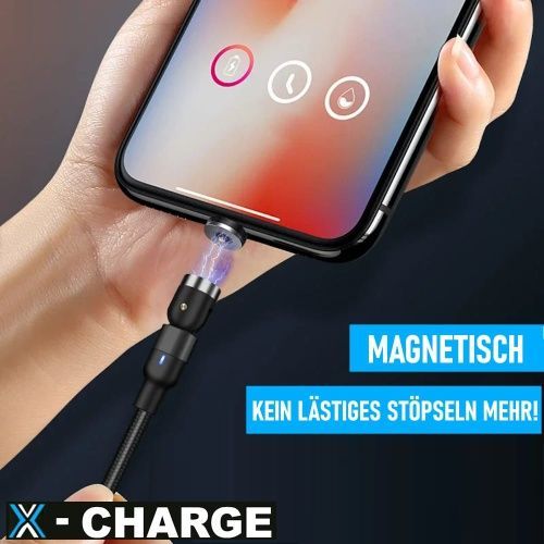 X-CHARGE magnetisches Ladekabel 360° Rotation für iPhone Micro USB Type C Magnet Schn