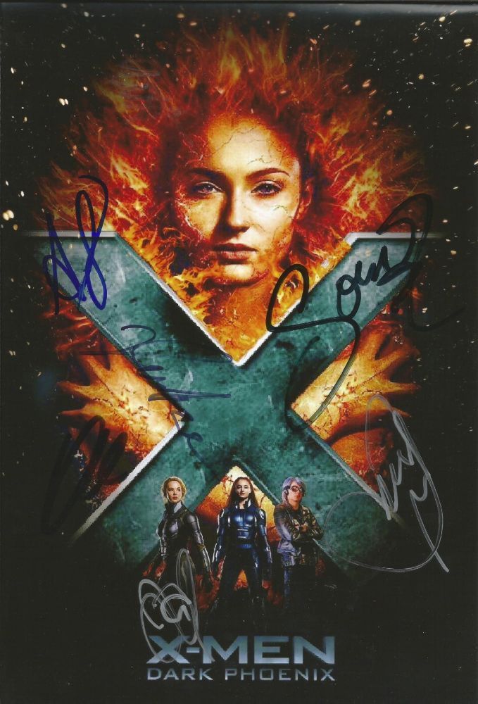 Original Autogramm von X-Men Dark phoenix Cast auf einem Großfoto in der Größe 20x30 cm Kein Repro (Druck)