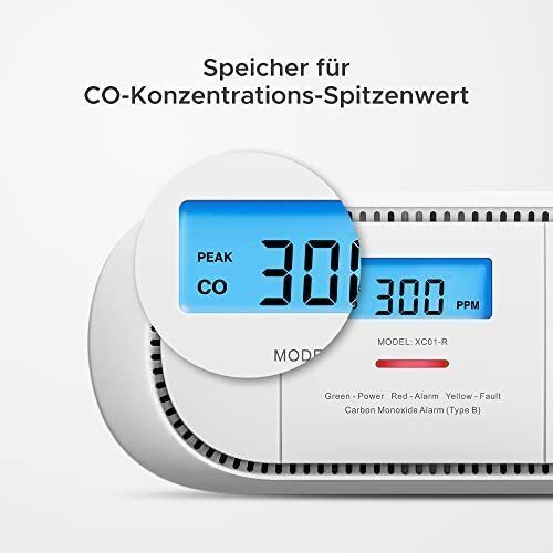 X-Sense XC01-R Kohlenmonoxid-Warnmelder LCD-Anzeige Spitzenwertspeicher 5 Jahre