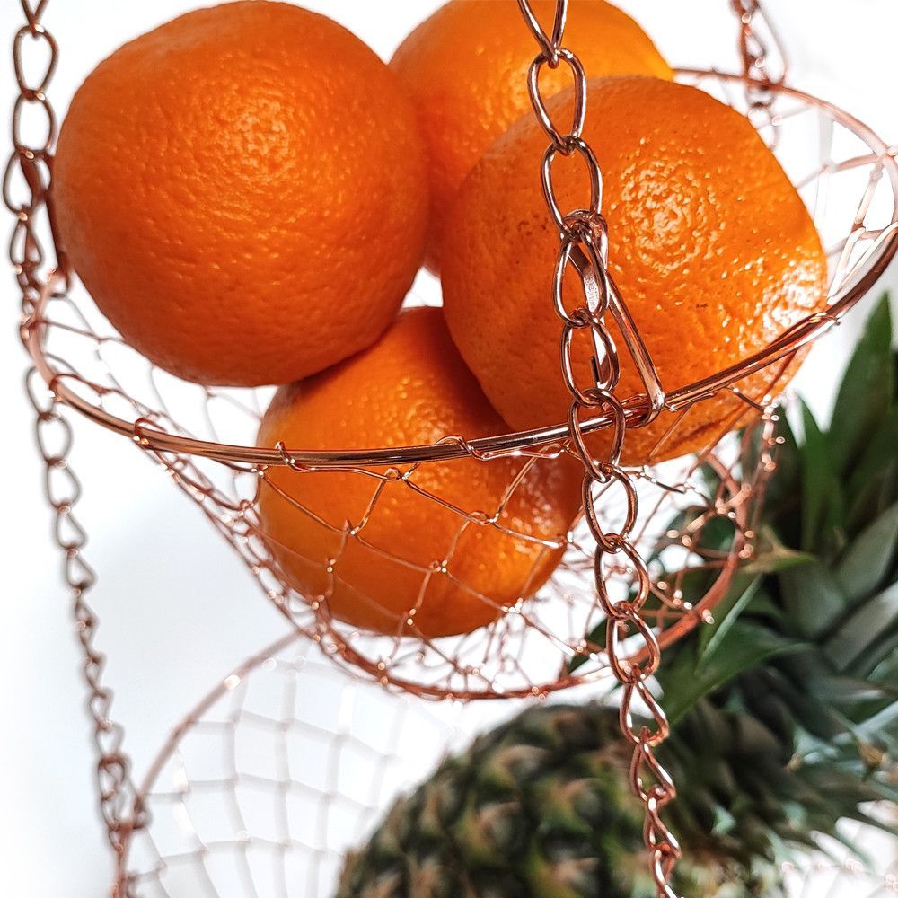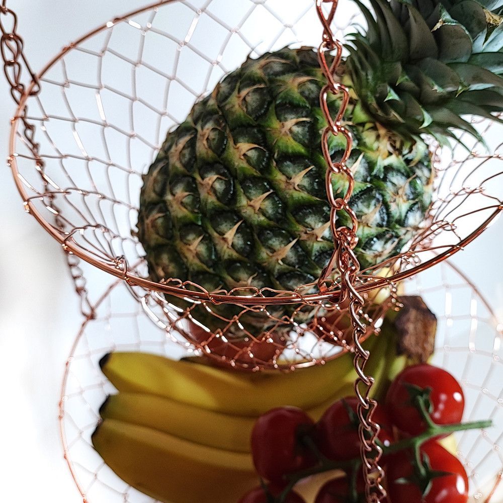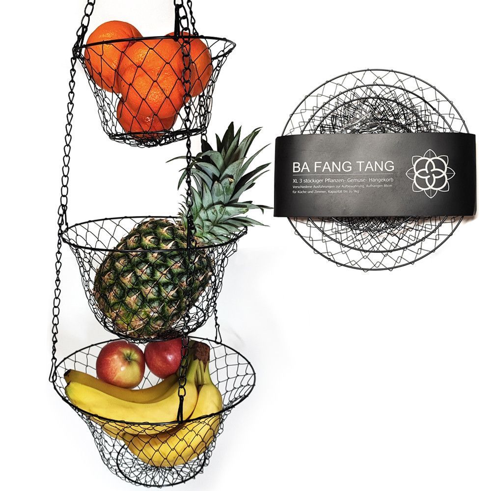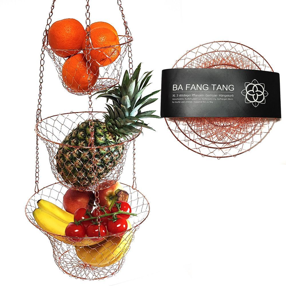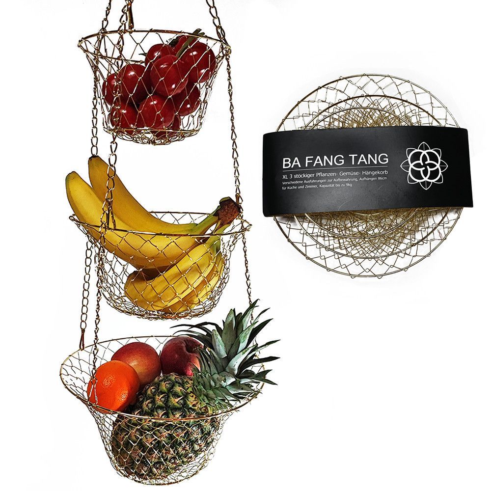 XL 3 Etagen Obst- Pflanzen- Gemüse-Hängekorb Aufhängen bis 9 Kg schwarz/kupfer/gold