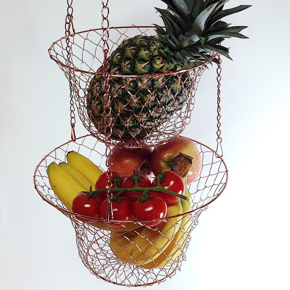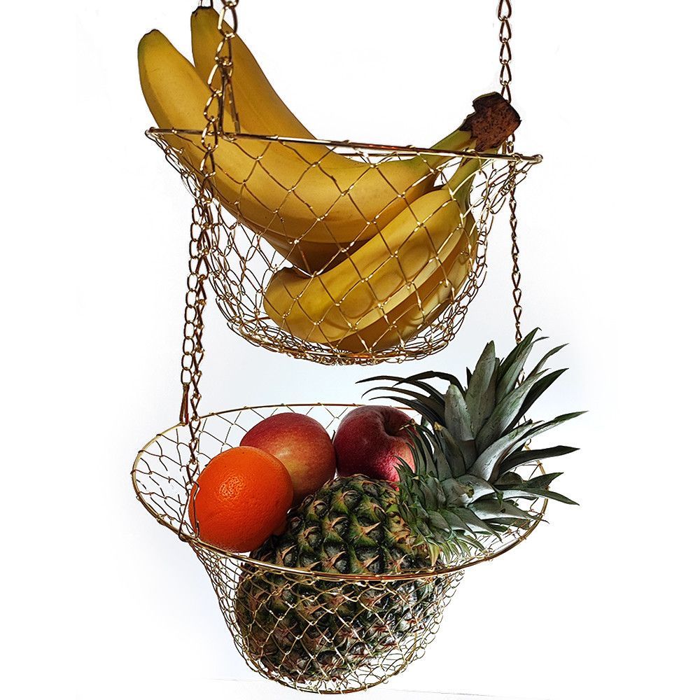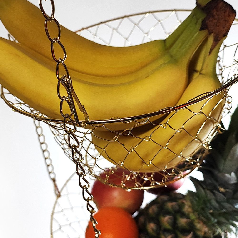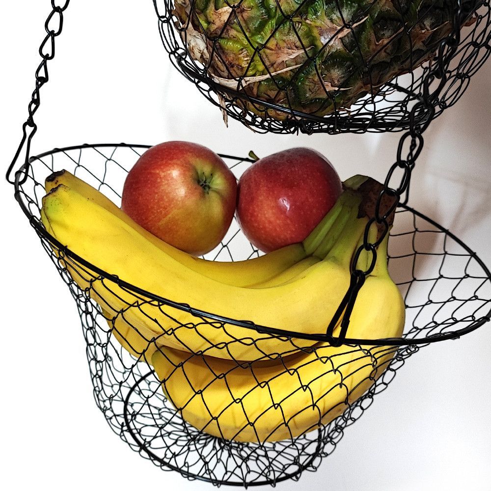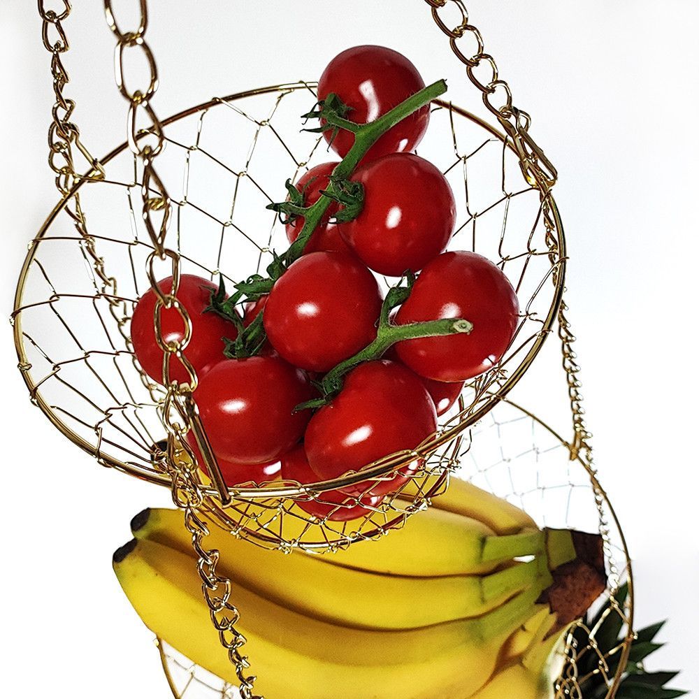 XL 3 Etagen Obst- Pflanzen- Gemüse-Hängekorb Aufhängen bis 9 Kg schwarz/kupfer/gold