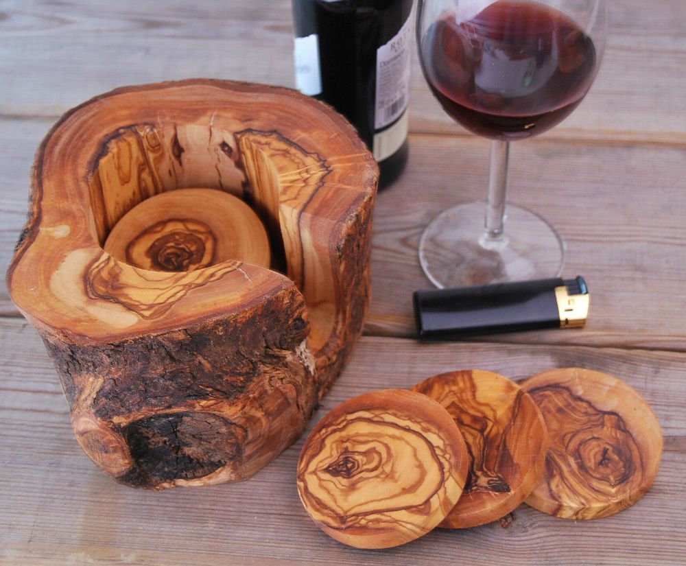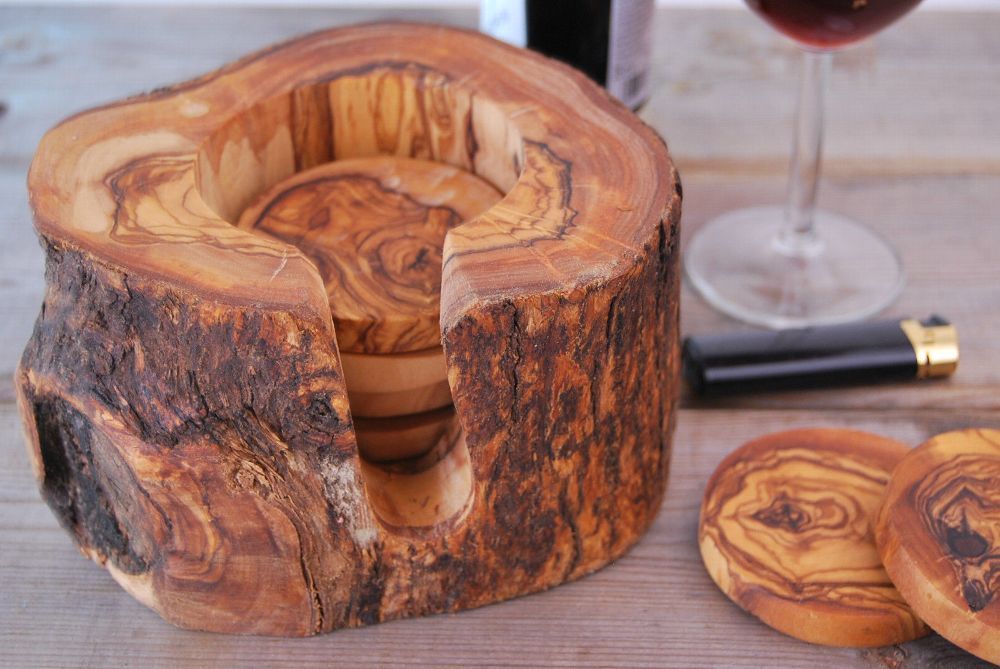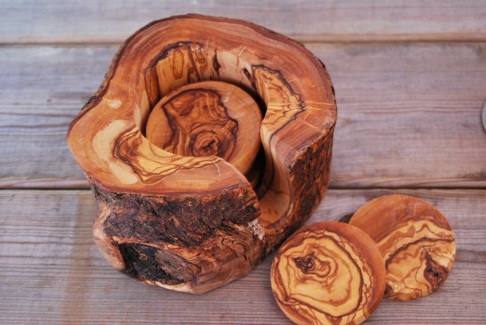 XL 6er Set Untersetzer aus Olivenholz & Halterung, Rustikal Holzuntersetzer Holz