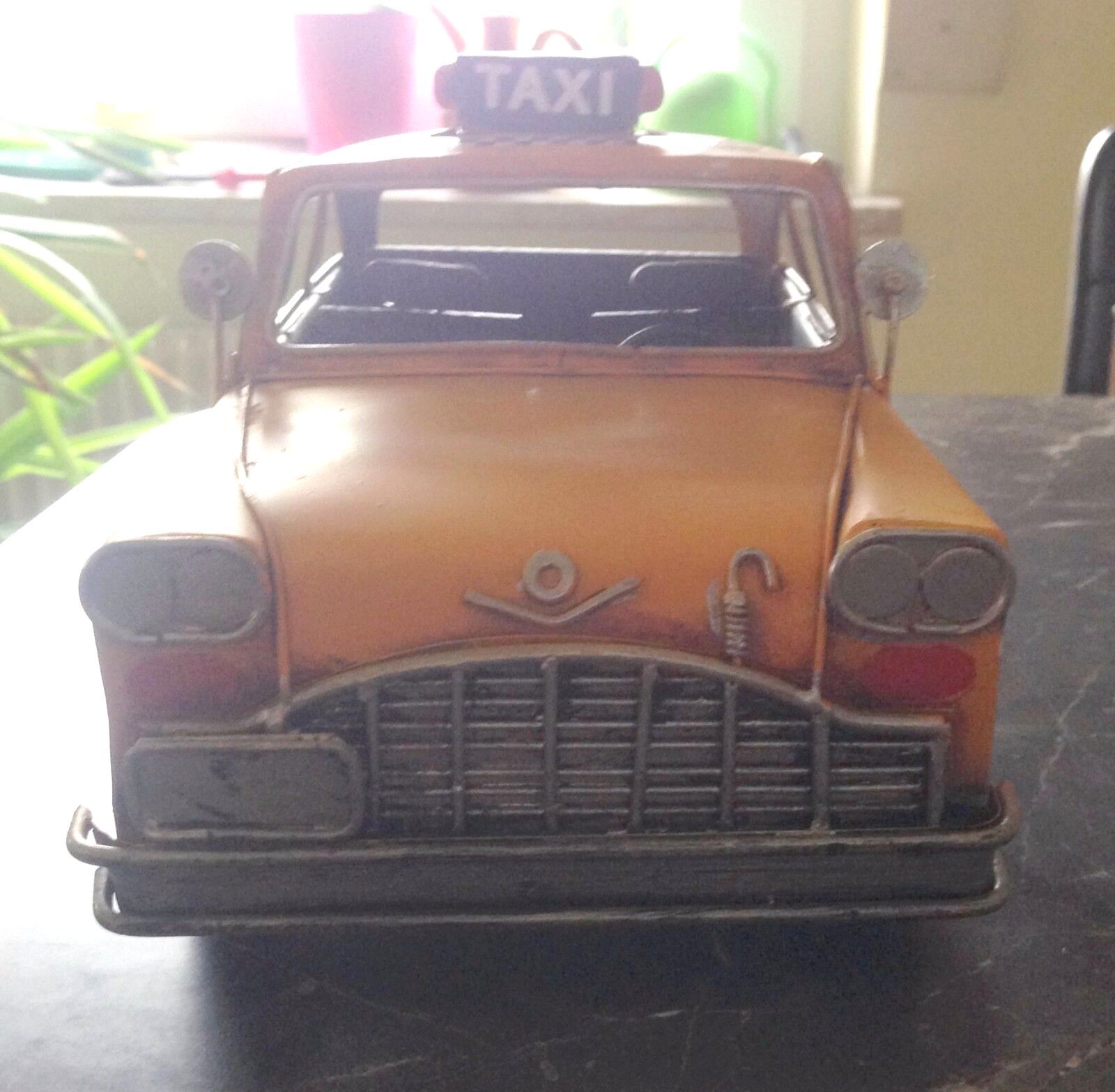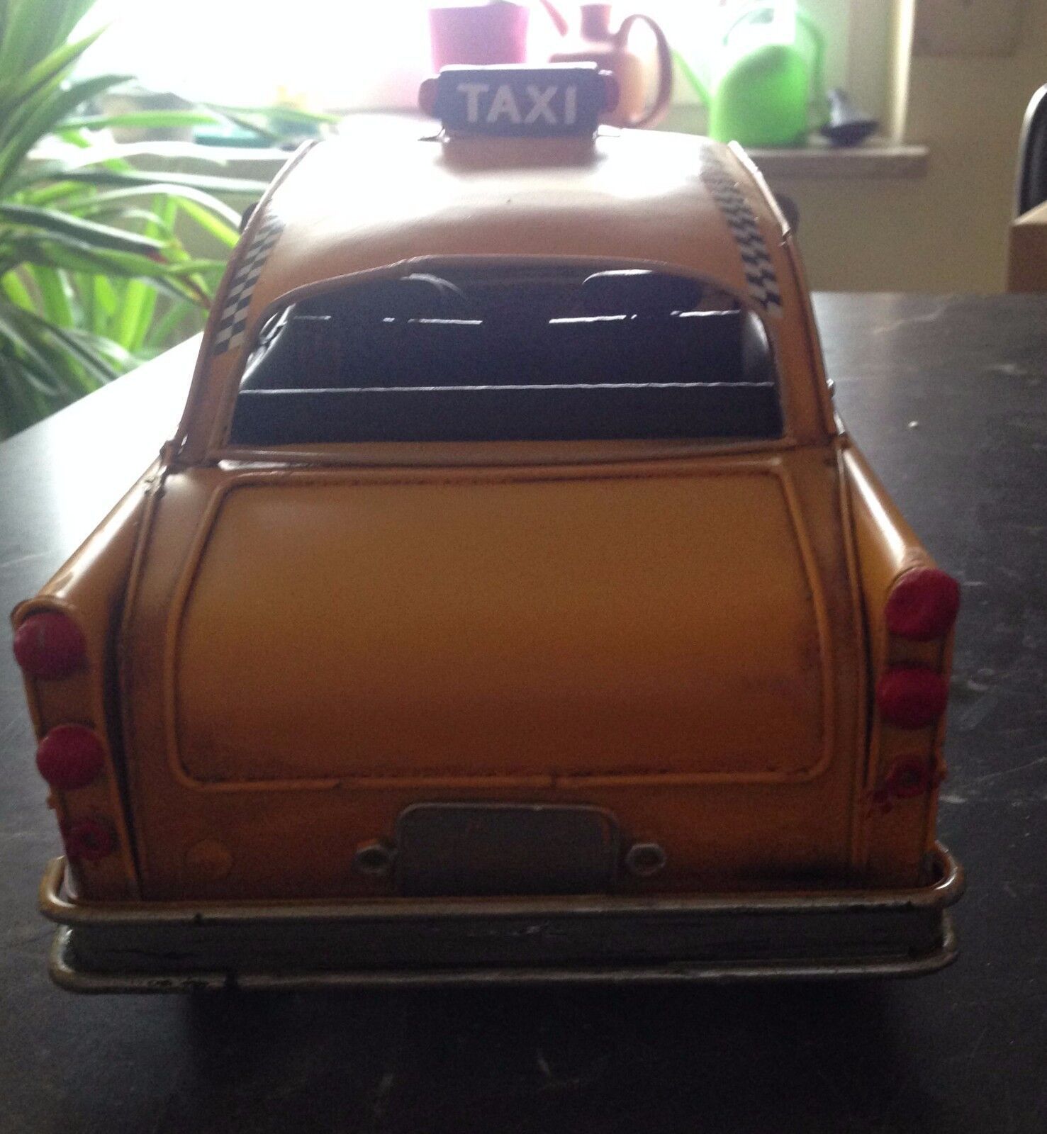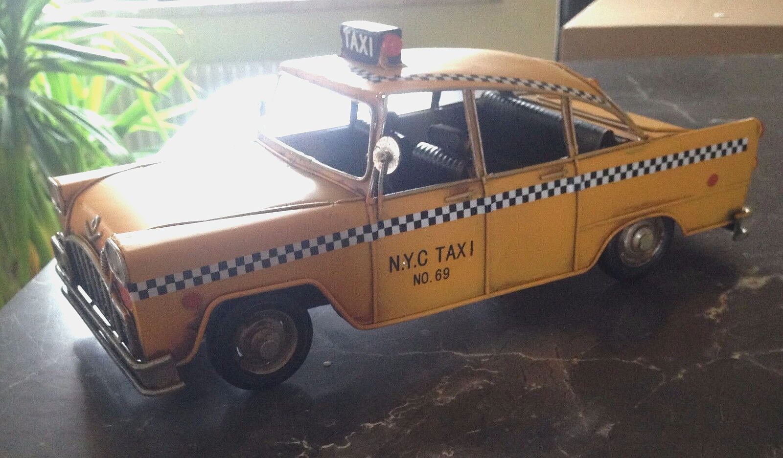 Sie kaufen hier ein Vintage Retro XL Blechmodell - New York Taxi - Yellow City Cab Grösse ca. 31 cm lang - 11 cm Hoch - 12 cm breit Blech Modell in Handarbeit gefertigt und bemalt, mit vielen Details, ein herrliches Dekorationsstück Replikat nach alten Vorlagen vollständig aus Metall gefertigt. Ein