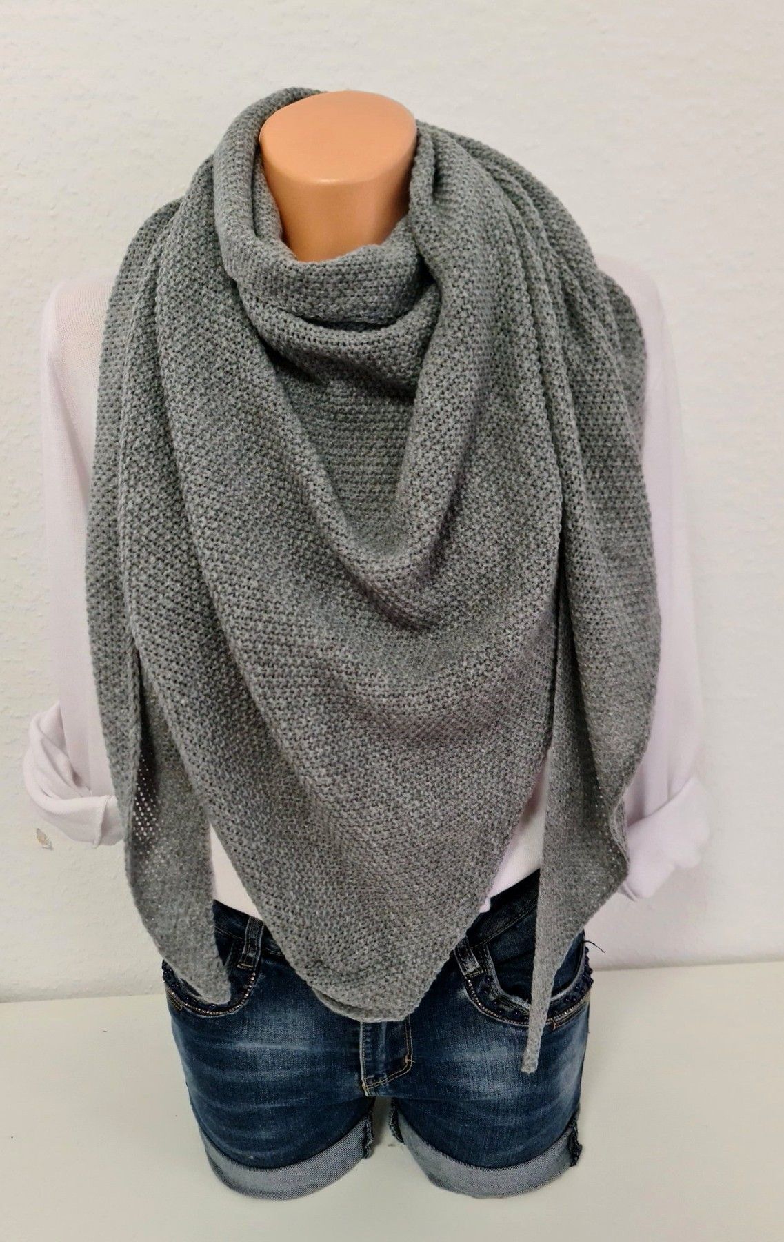 XL Blogger weiches Dreieckstuch Schal Stola einfarbig Strick Viskose/Wolle Mittelgrau