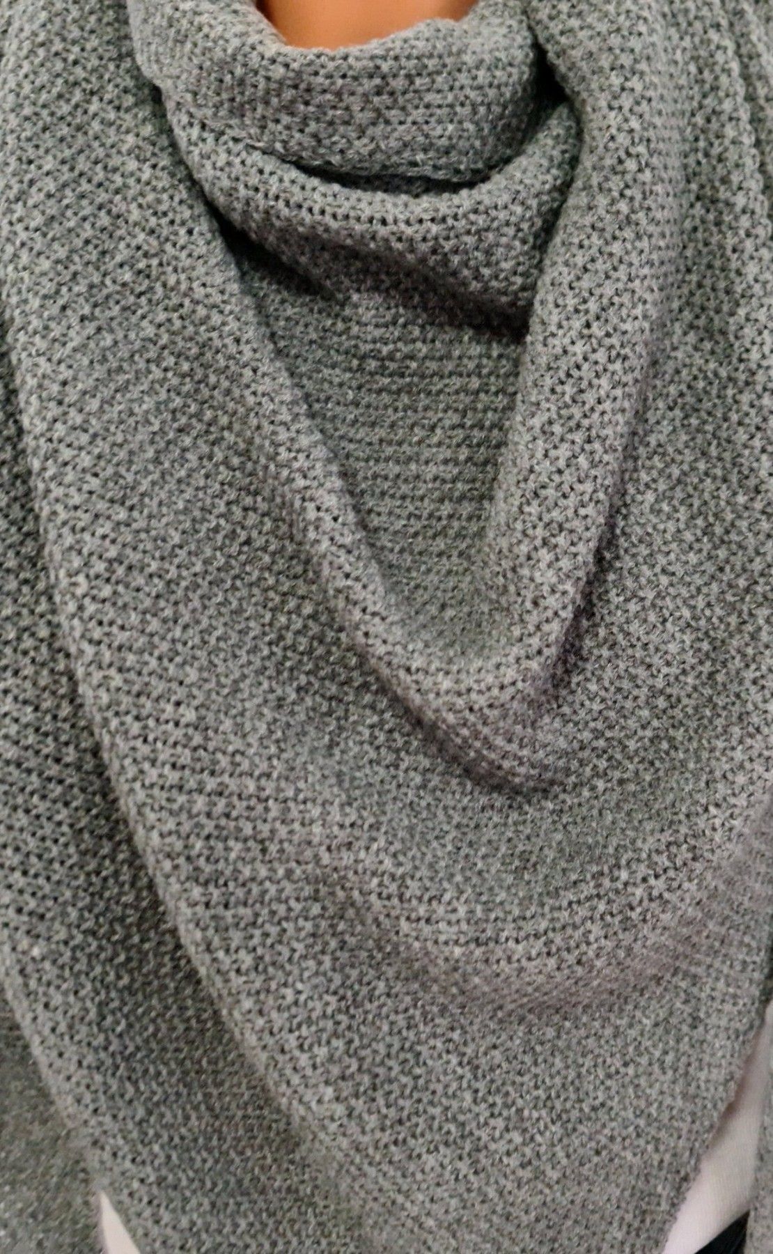 XL Blogger weiches Dreieckstuch Stola einfarbig Strick Viskose/ Wolle Mittelgrau