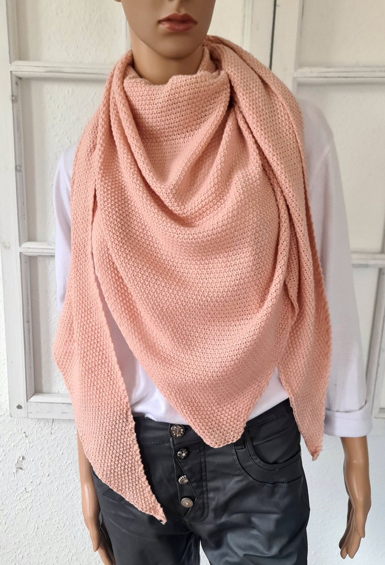 XL Dreieckstuch Perlmuster Halstuch Wollschal Strick 70 % Viskose Wolle Rosé