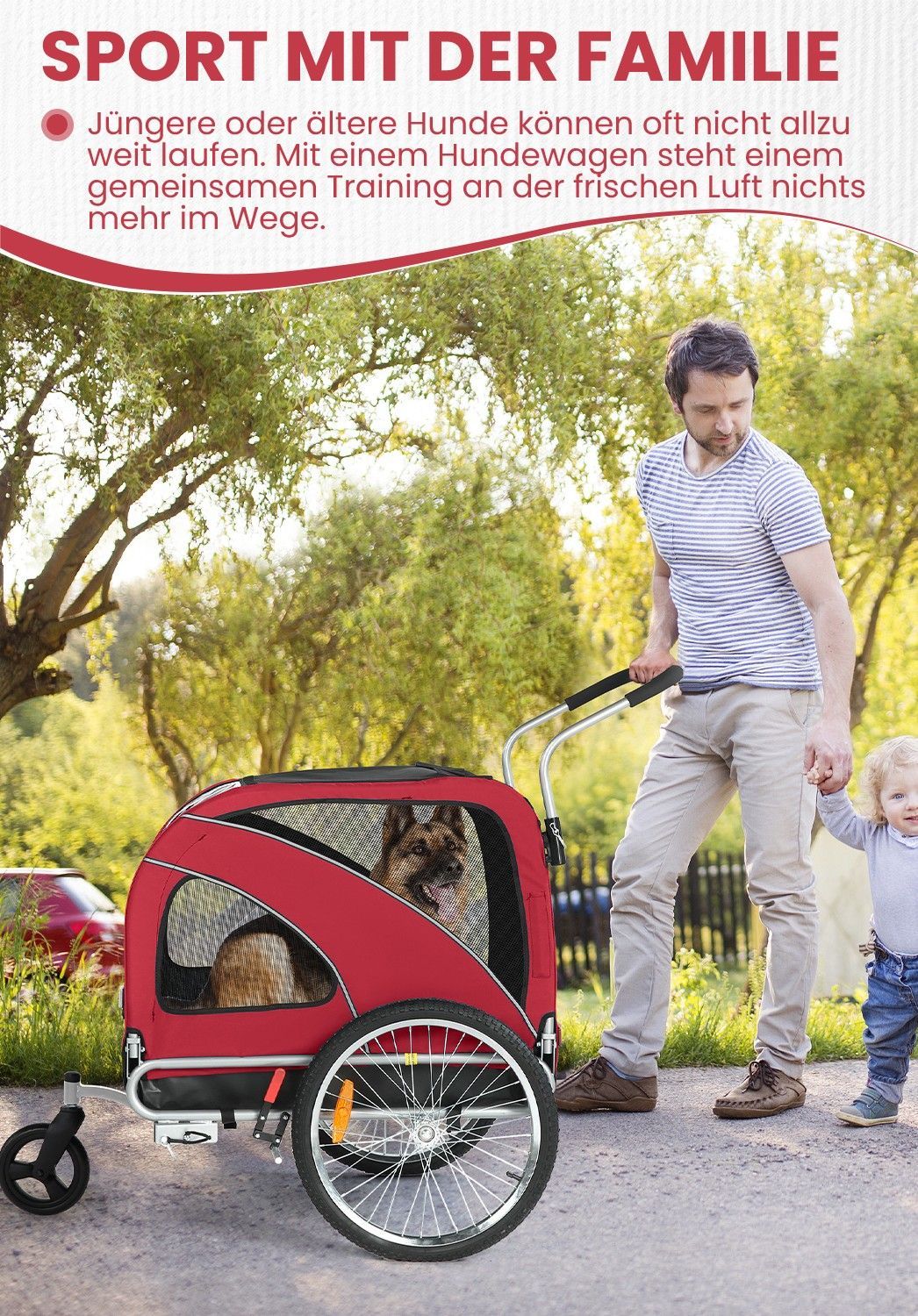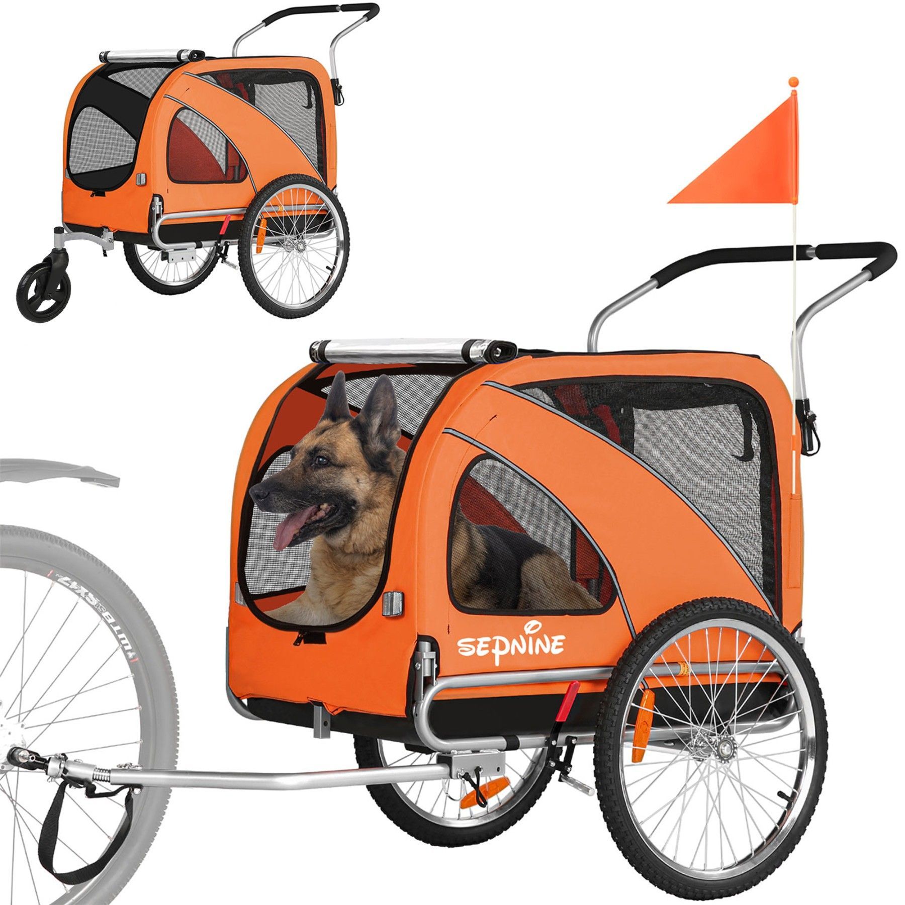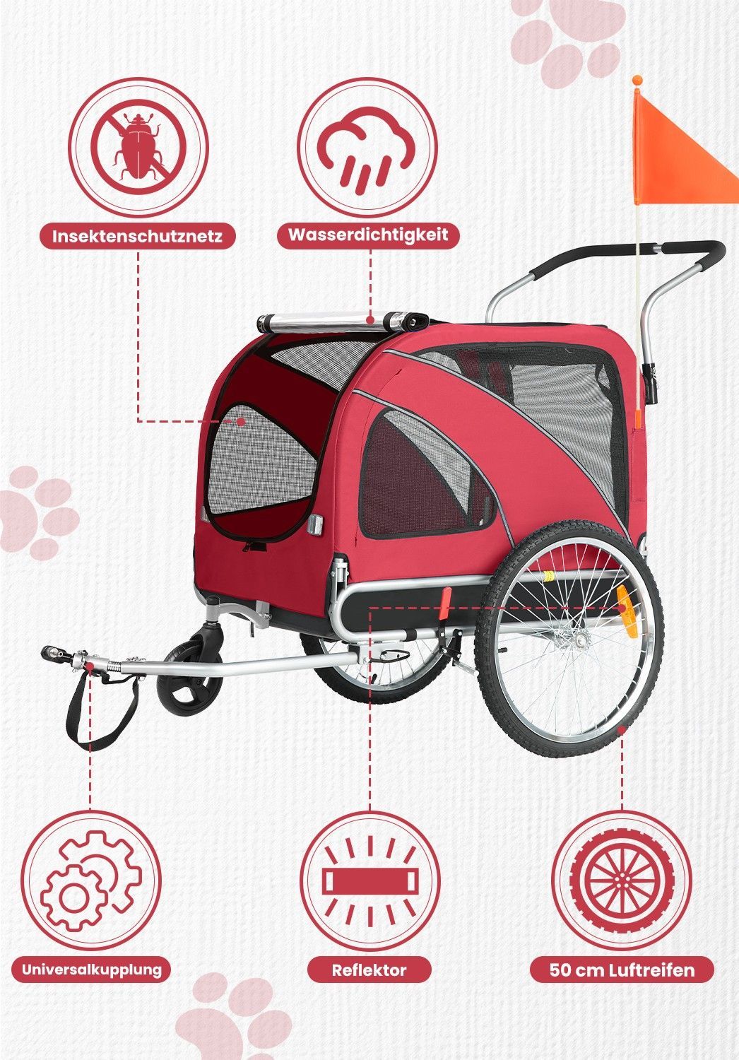 XL Hundeanhänger Fahrrad & Jogger 2-in-1 mit Handbremse und Reflektoren, bis 40 kg