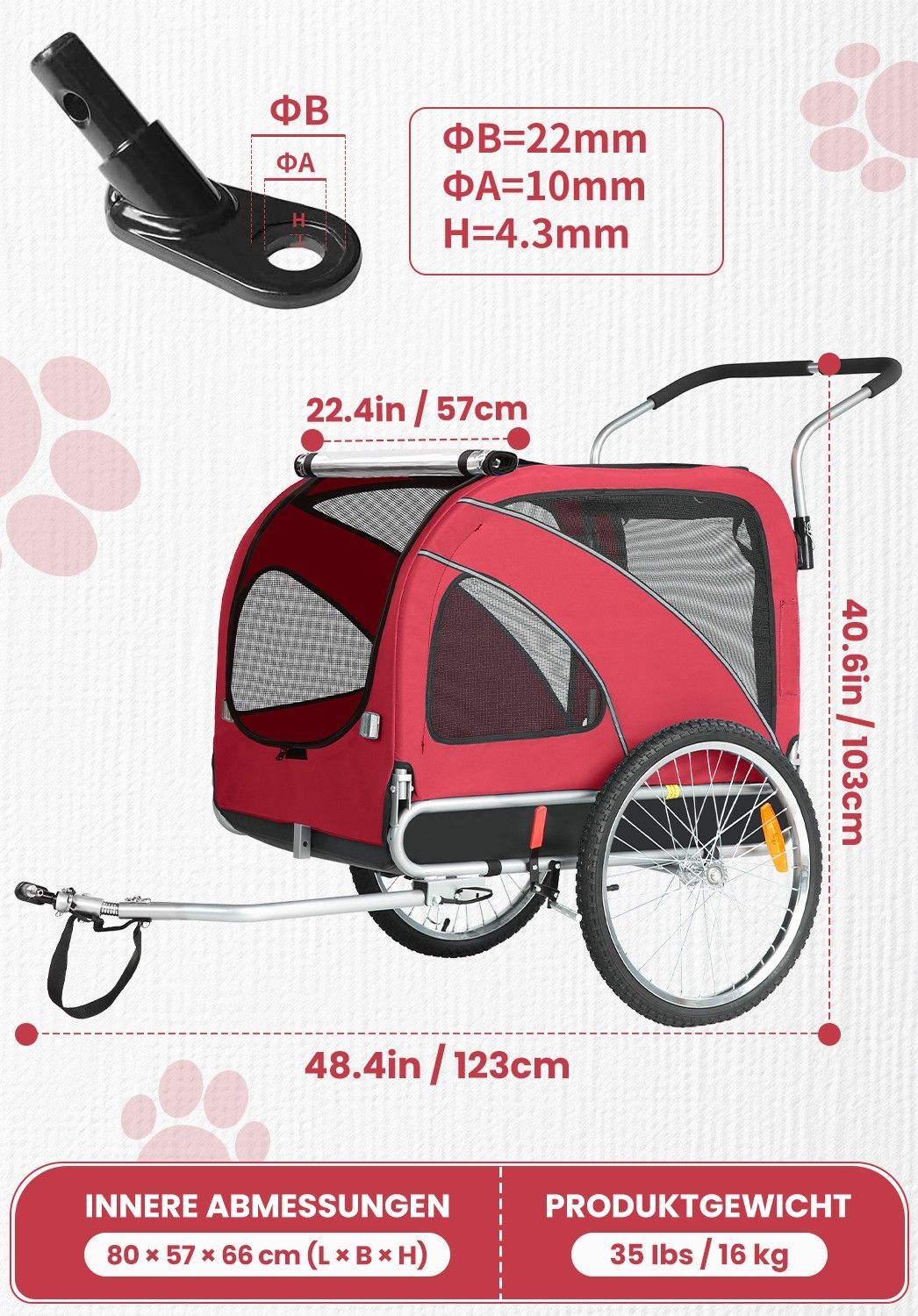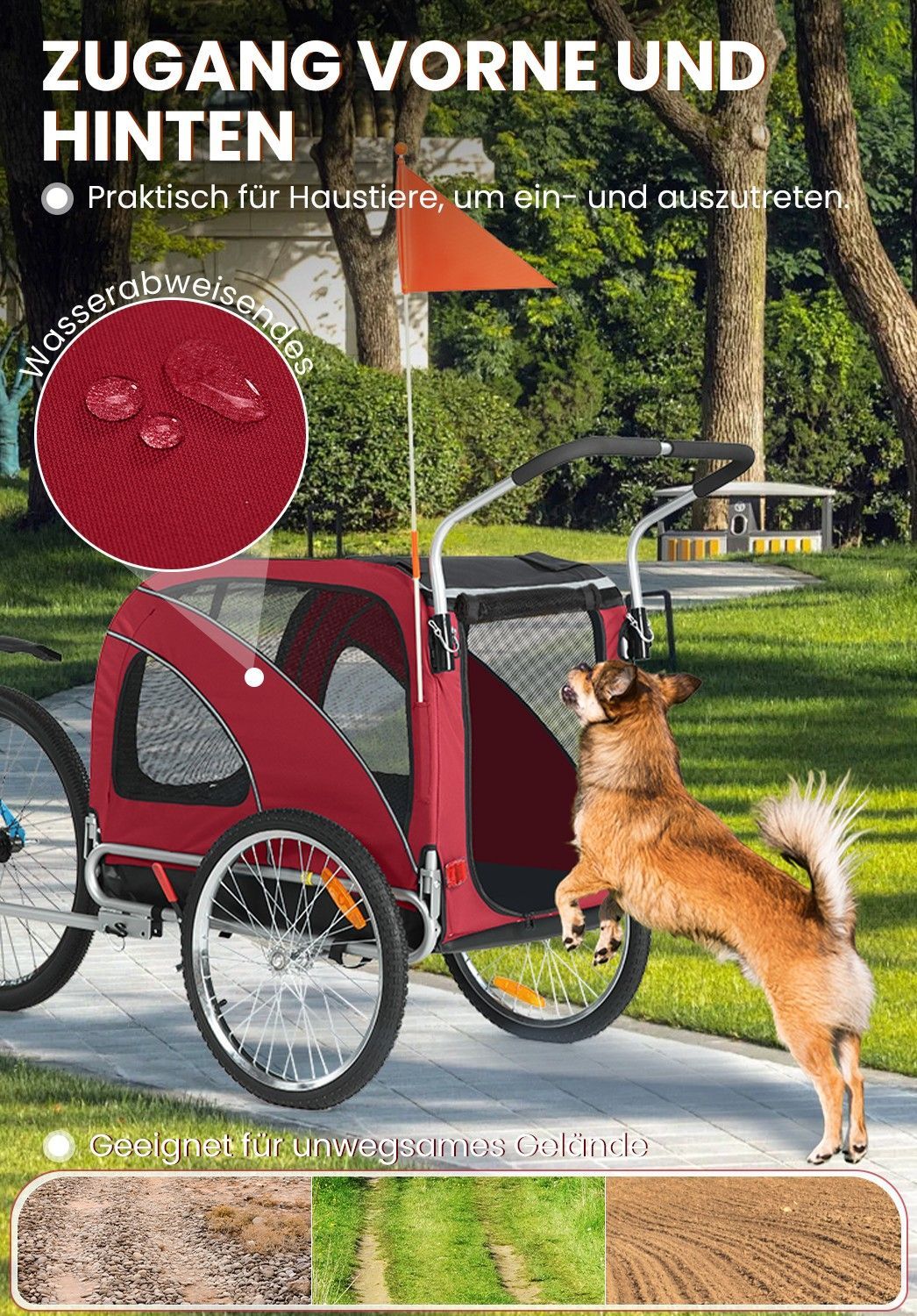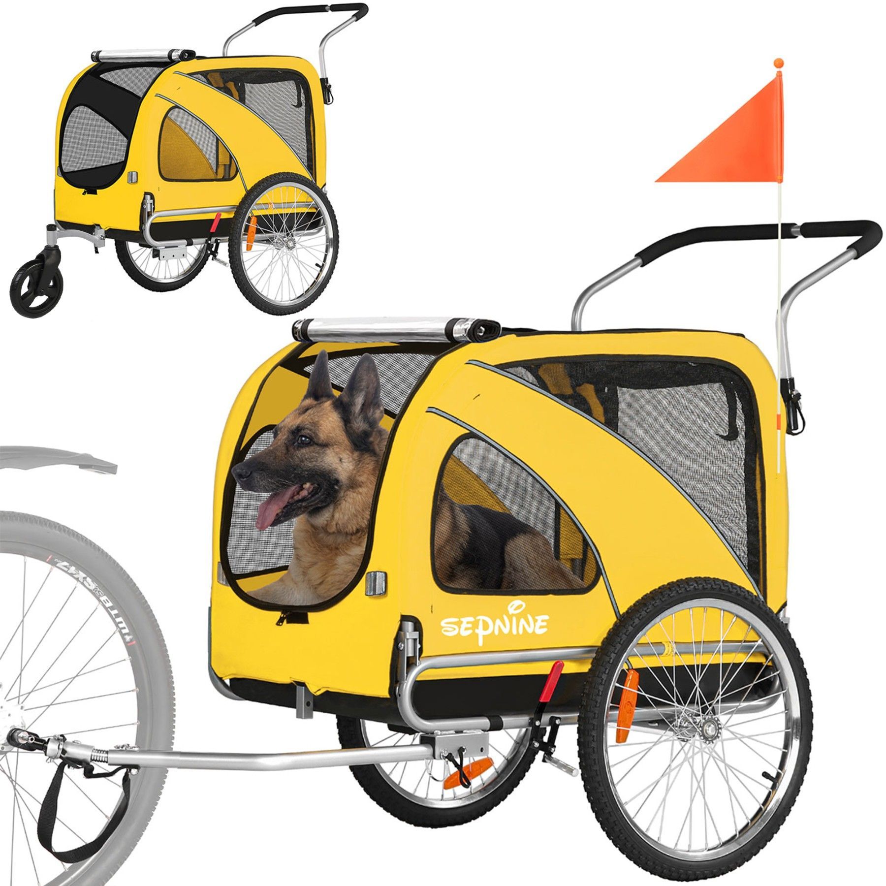 XL Hundeanhänger Fahrrad & Jogger 2-in-1 mit Handbremse und Reflektoren, bis 40 kg