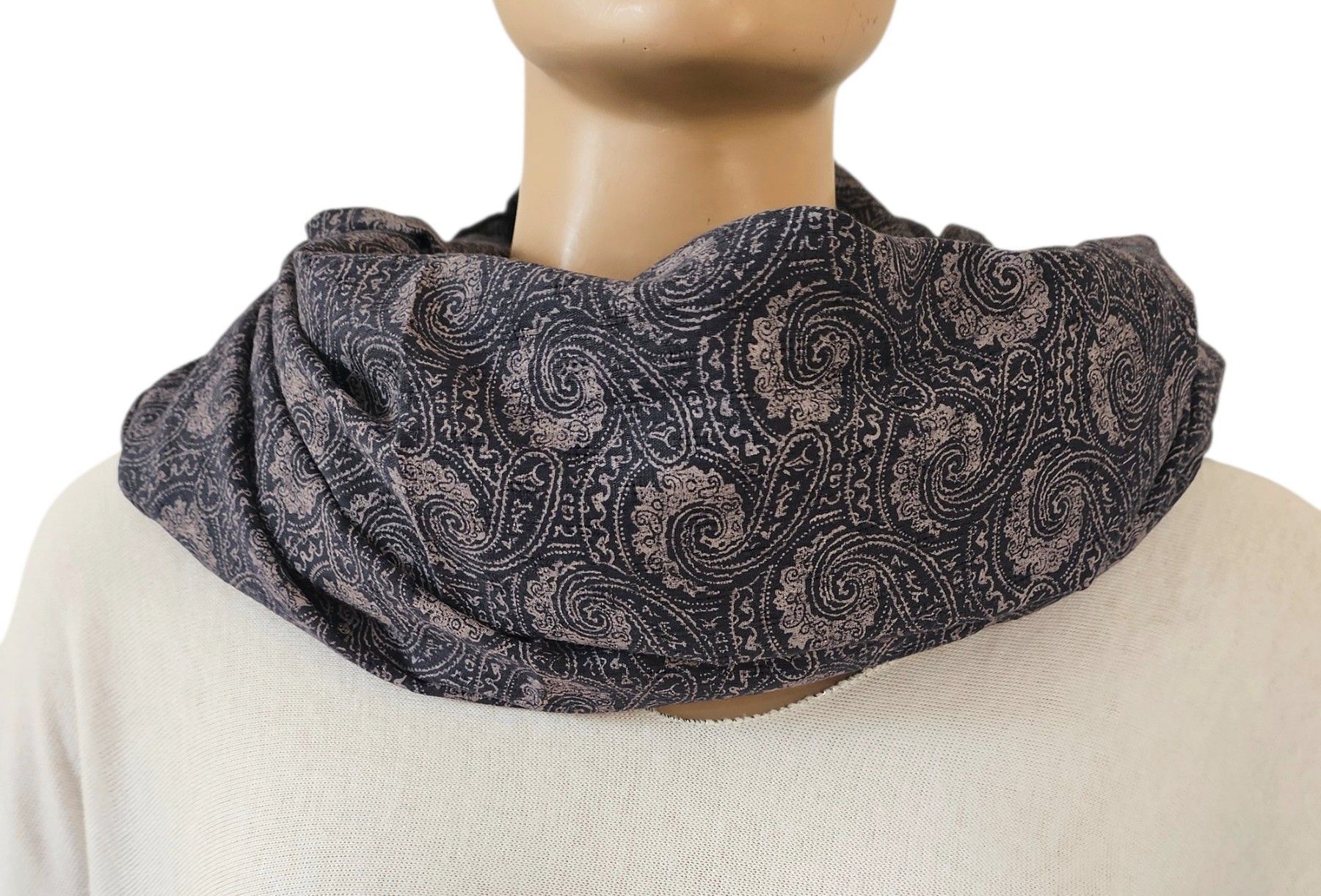 XL Loop Schal Halstuch Schlauchschal Baumwolle Viskose Paisleyprint Dunkelblau