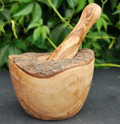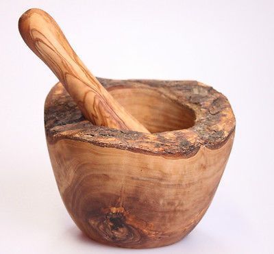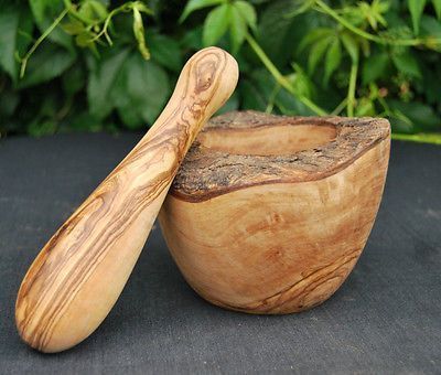 XL Mörser mit Stößel aus Olivenholz Küchenmörser Holzmörser Gewürzmörser 12cm