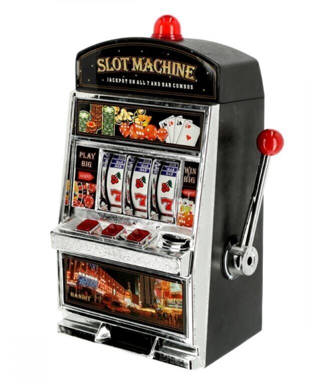 Ein Hauch von Las Vegas ! Damit die Bar zuhause zum Spielcasino wird, der einarmige Bandit: XL Slot Machine: Spardose mit Klingel und Licht Spielend sparen ! Breite: 20cm Höhe: 37cm Tiefe: 16cm Spardose Spielautomat, mit Klingel und LED in Colorbox