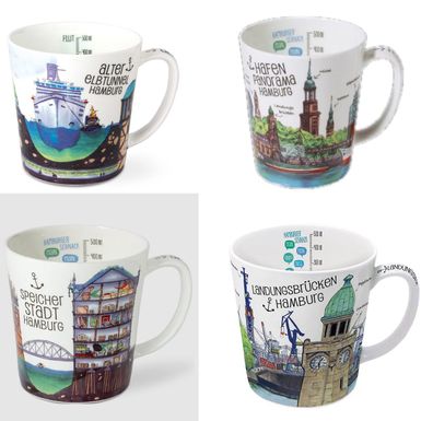 • 1 Kaffeebecher Hamburg Hafen, Speicherstadt, Elbtunnel, Kaffeetasse Tassen Teetassen