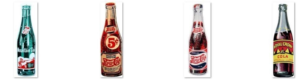 XL US Blechschild 15x55 cm Pepsi Mountain Dew Royal Crown Cola Bottle Flasche