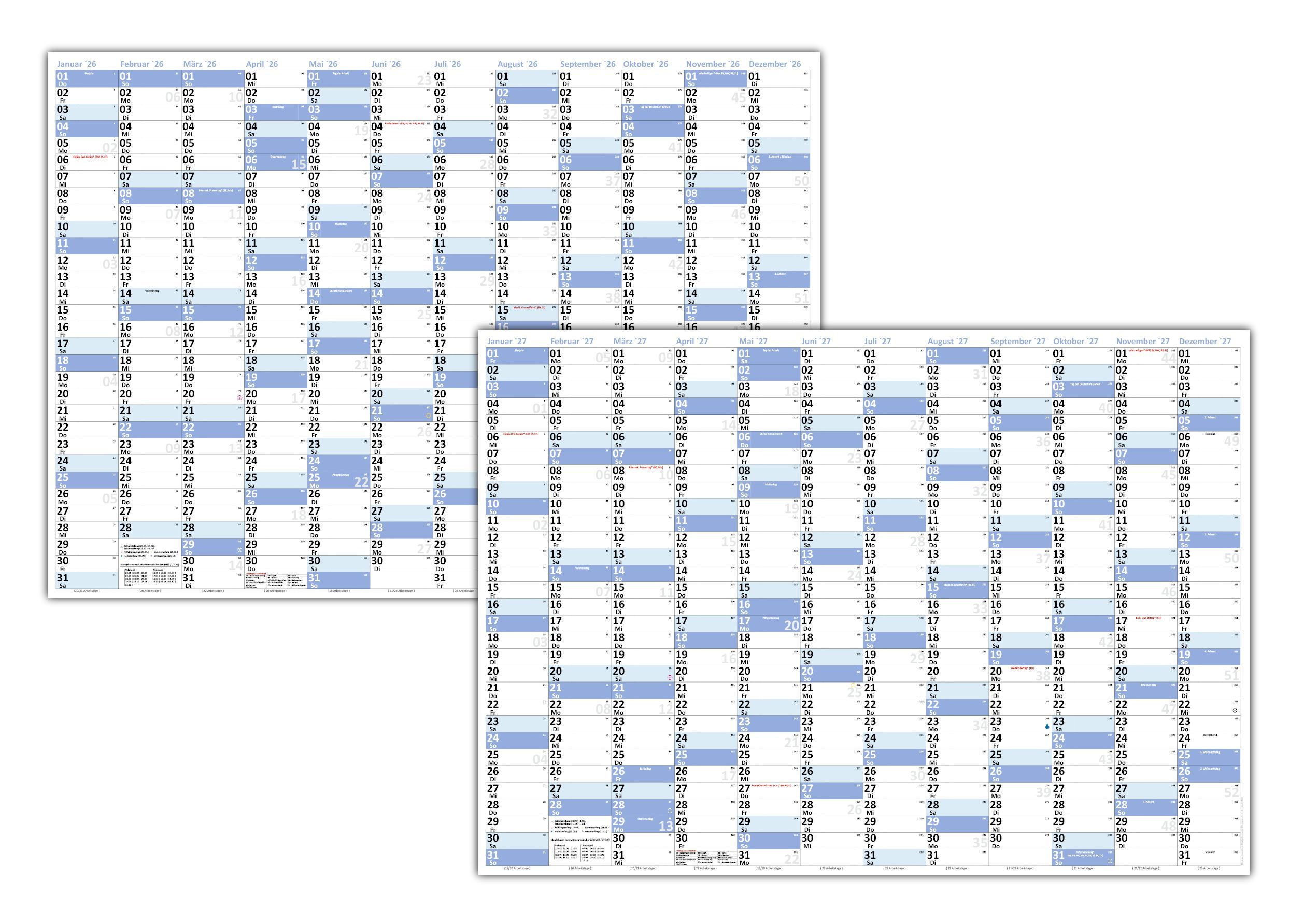 XL Wandkalender DIN A1 2026 + 2027 blau, nass abwischbar Format 59,4 x 84,1cm