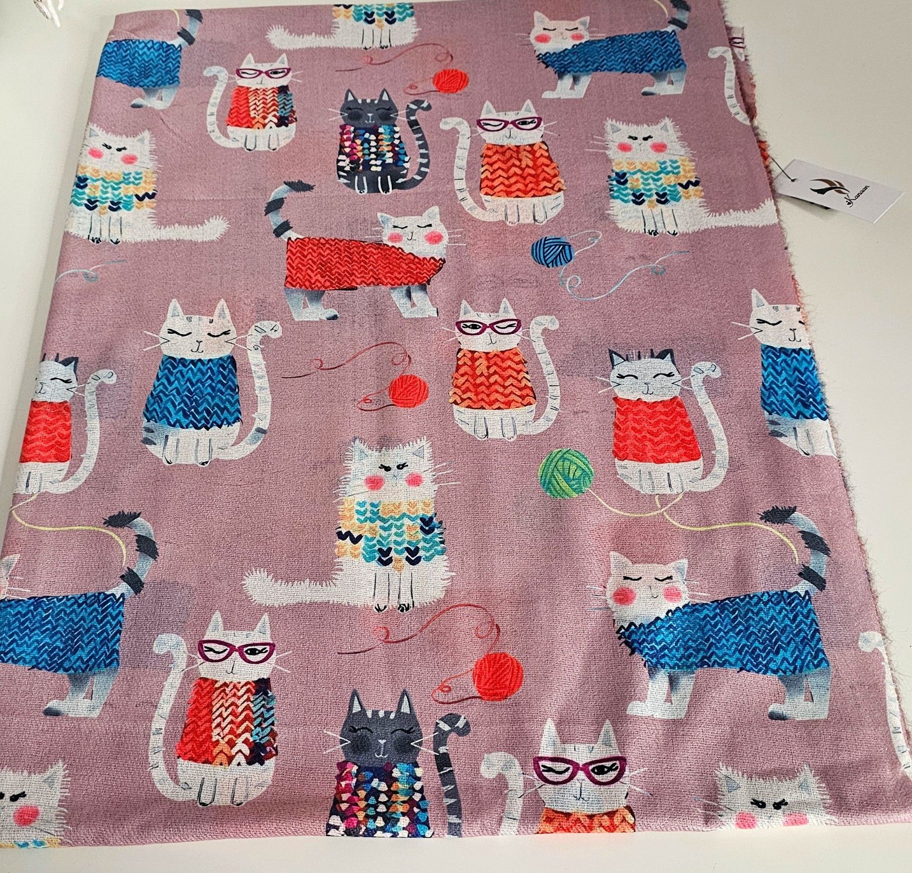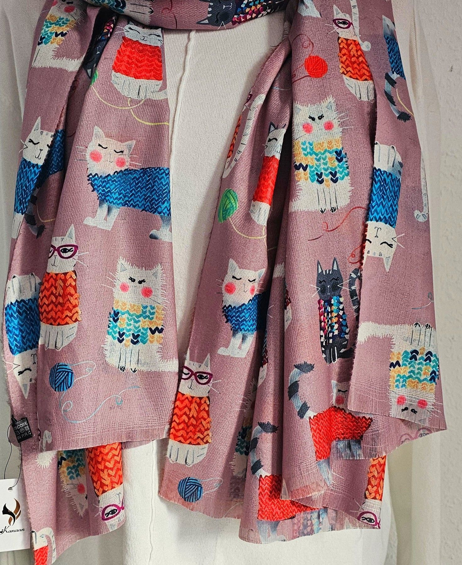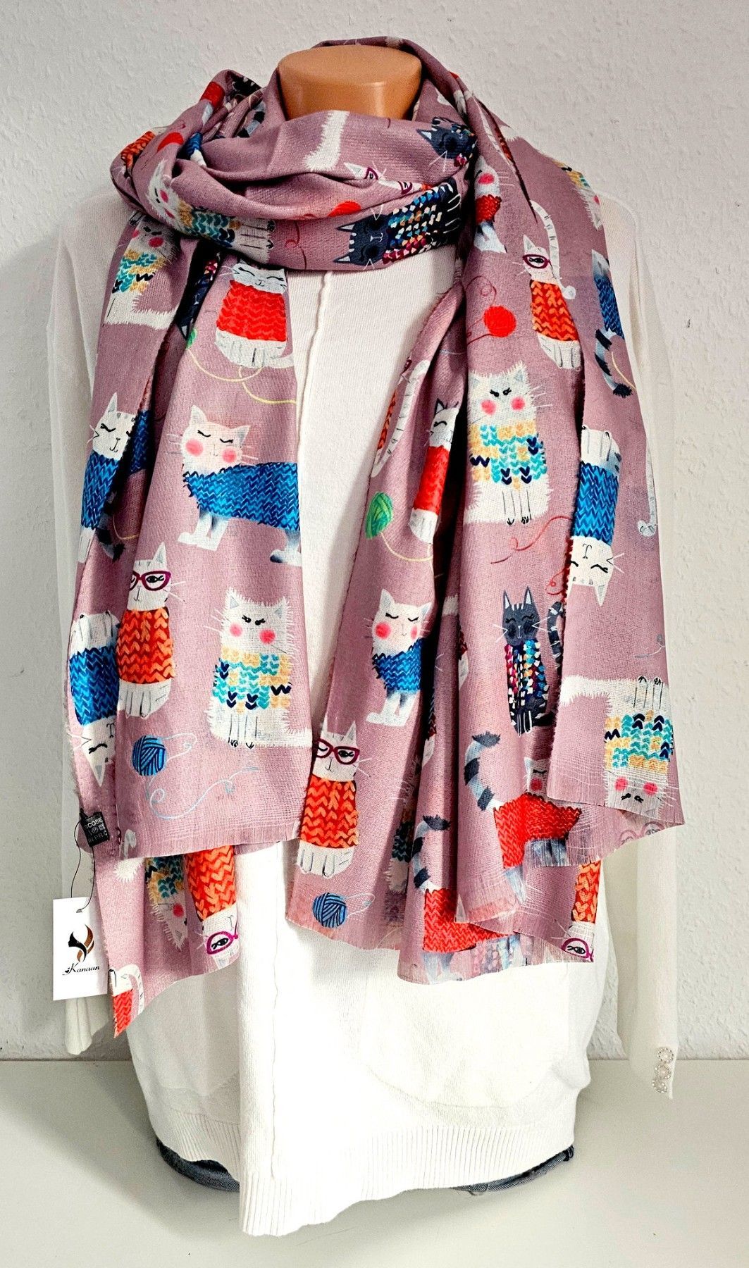 XL Winterschal Schal Tuch Halstuch weiche Viskose bunter Katzenprint Altrosa/Bunt