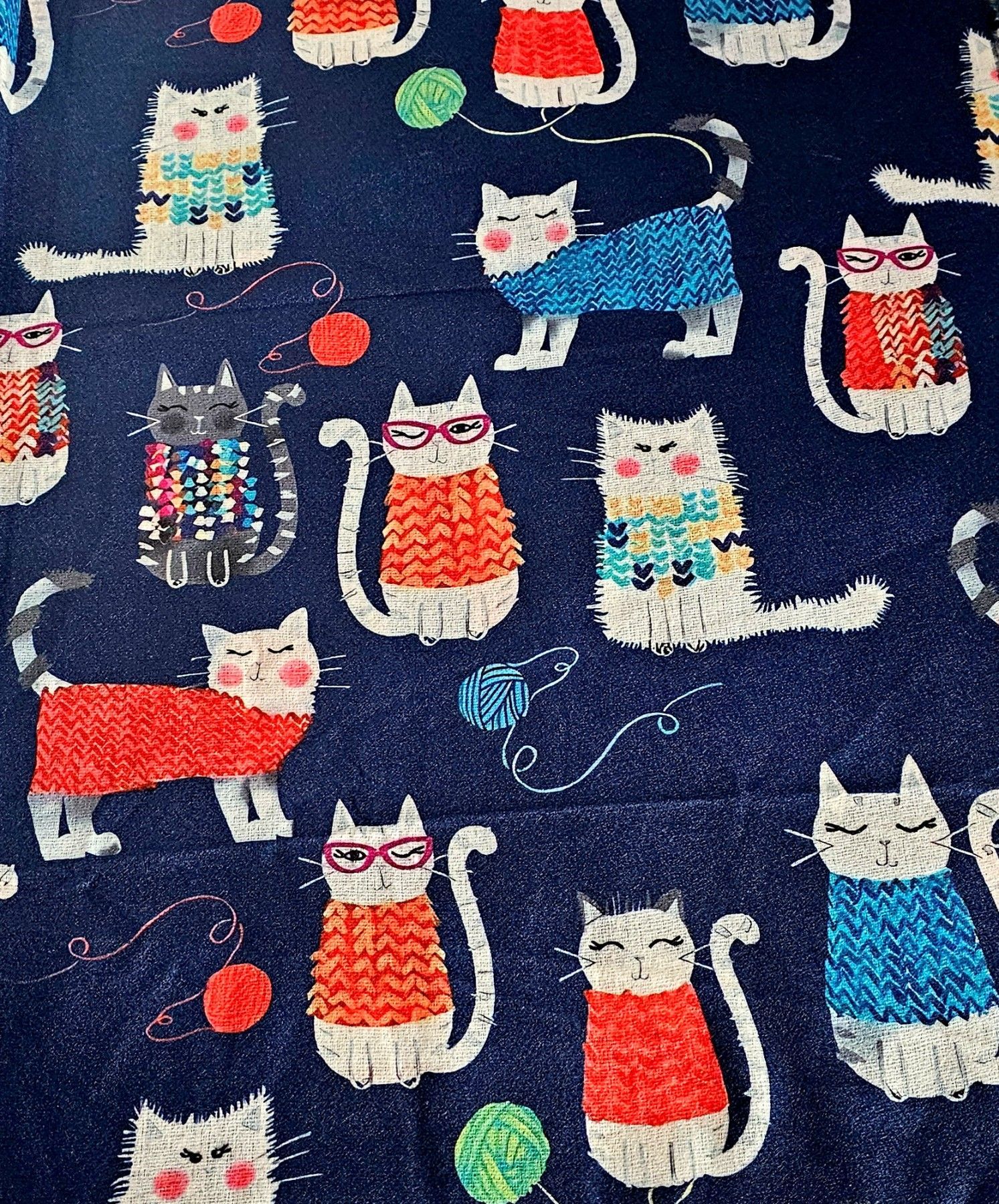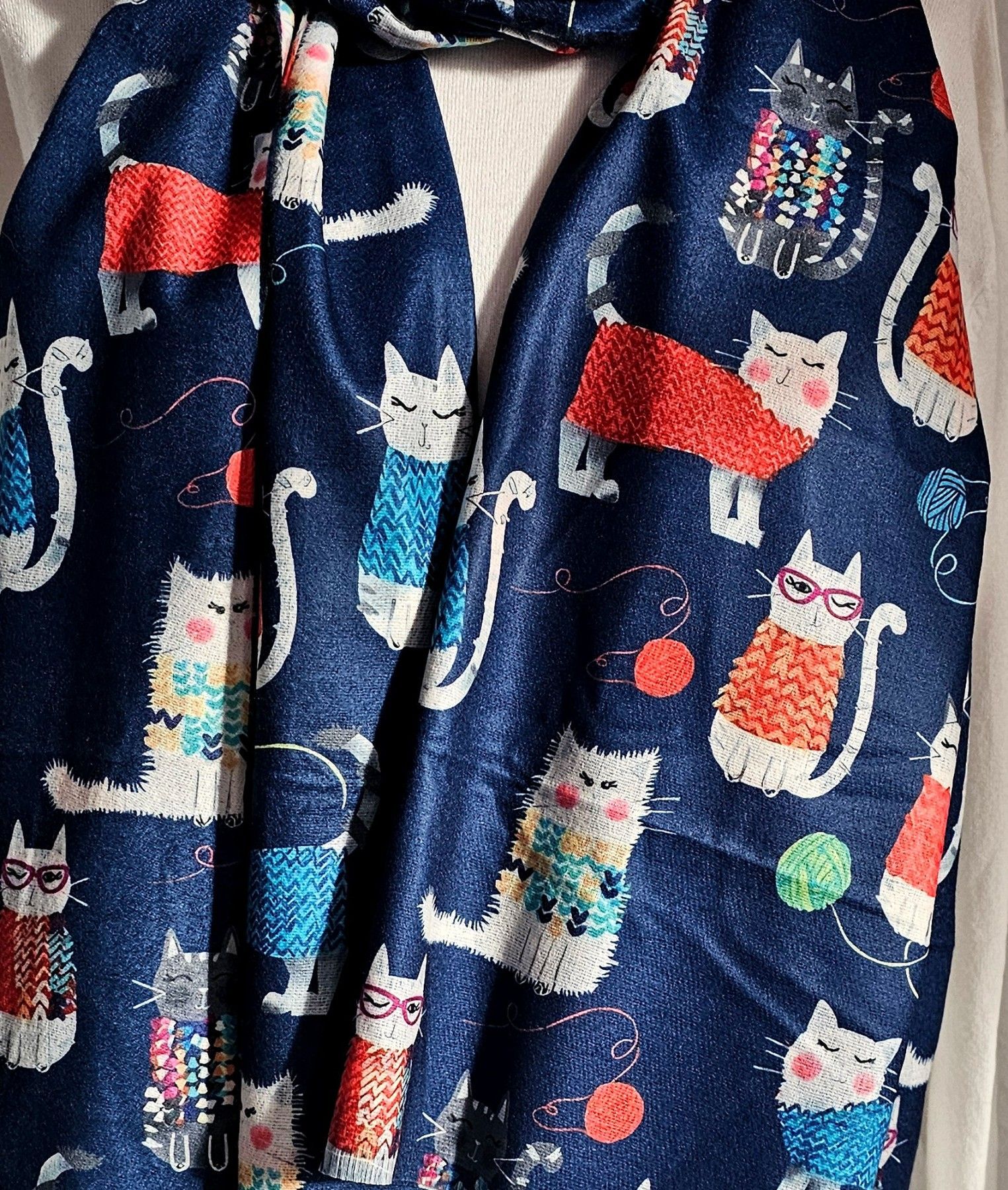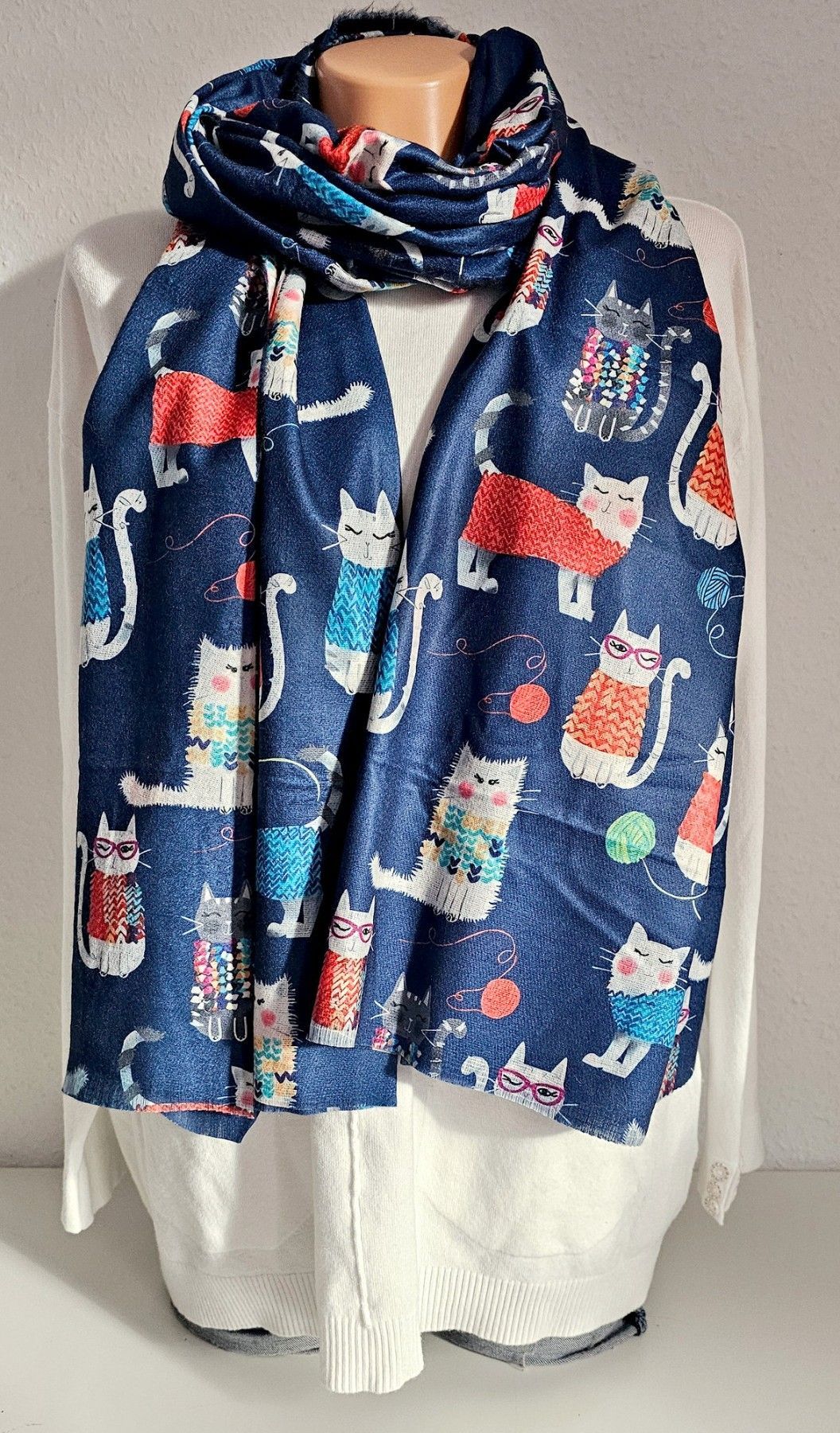 XL Winterschal Schal Tuch Halstuch weiche Viskose bunter Katzenprint Blau/Bunt