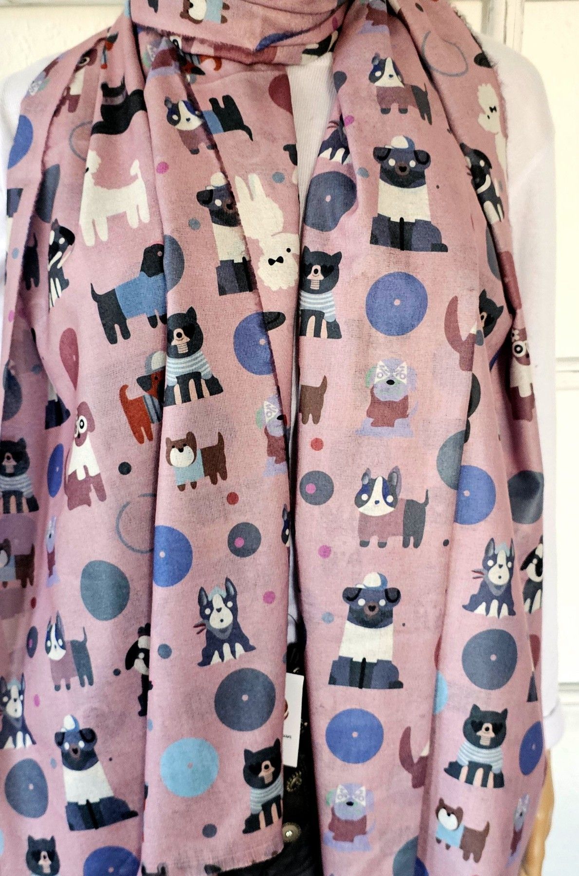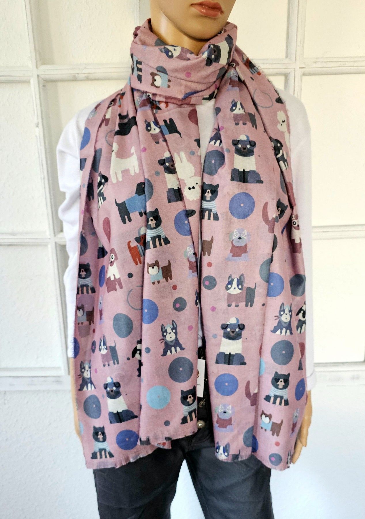 XL Winterschal Schal Tuch Halstuch weiche Viskose Hunderassen Altrosa/Bunt