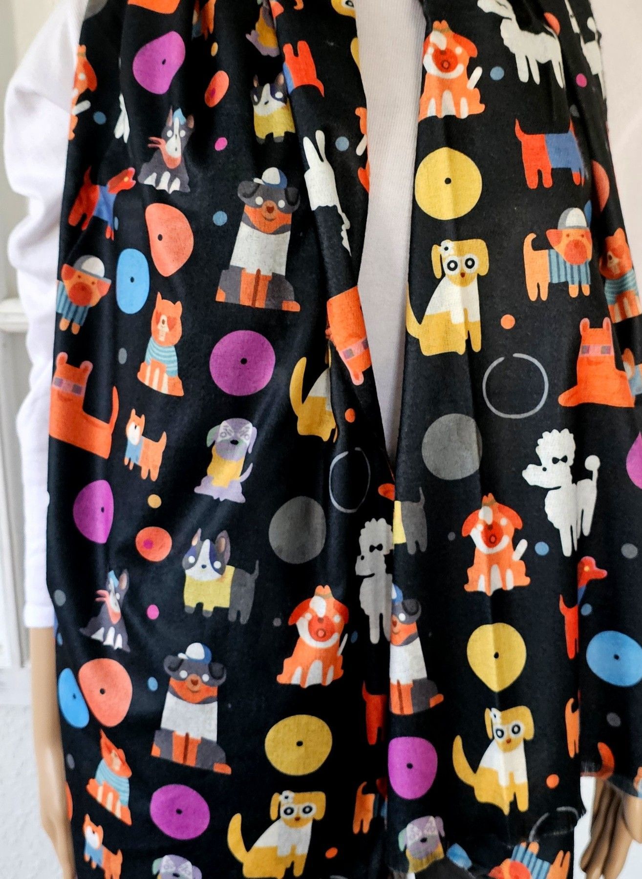 XL Winterschal Schal Tuch Halstuch weiche Viskose Hunderassen Schwarz/Bunt