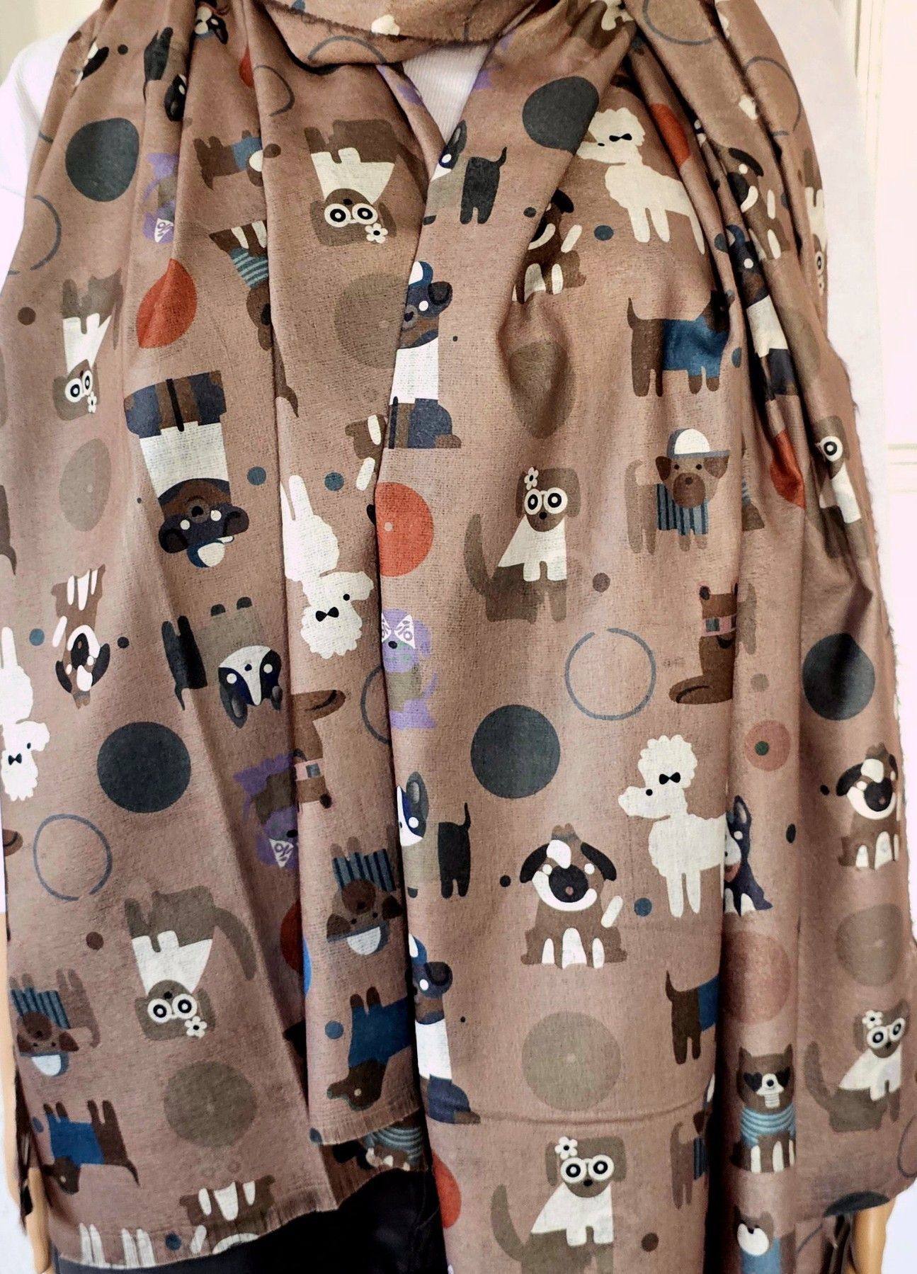 XL Winterschal Schal Tuch Halstuch weiche Viskose Hunderassen Taupe/Bunt