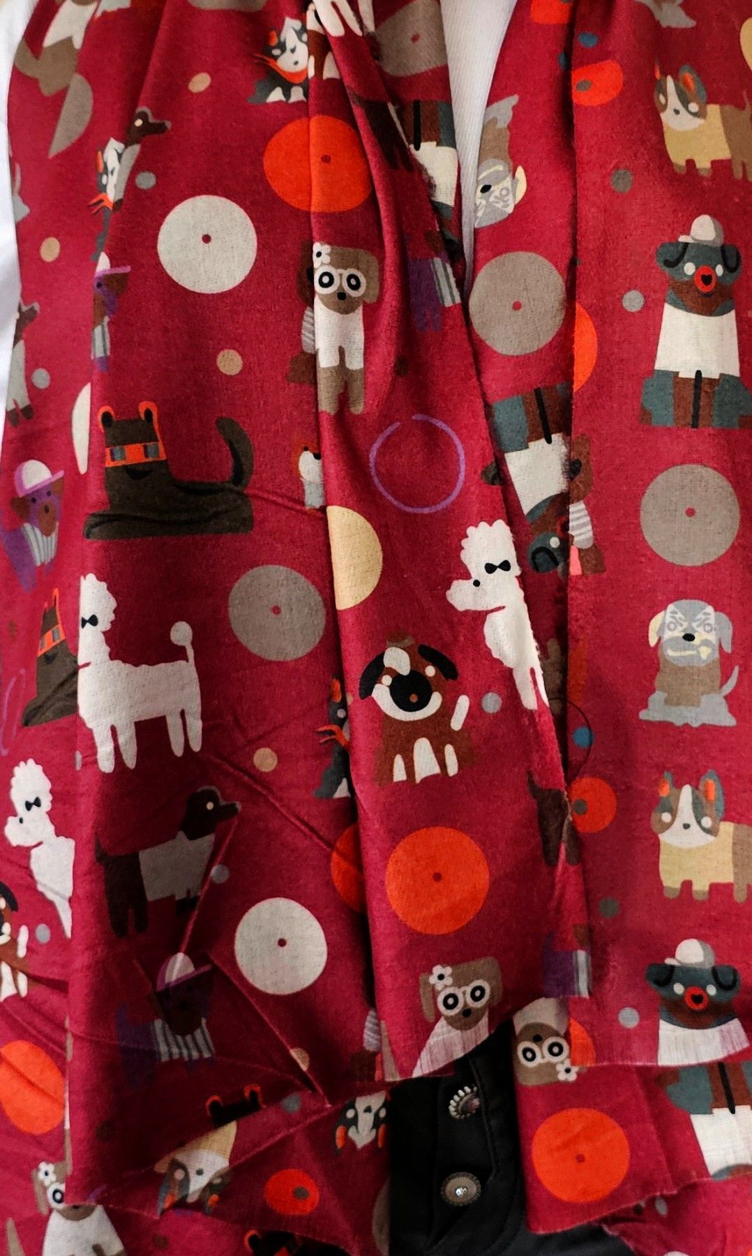 XL Winterschal Schal Tuch Halstuch weiche Viskose Hunderassen Weinrot/Bunt