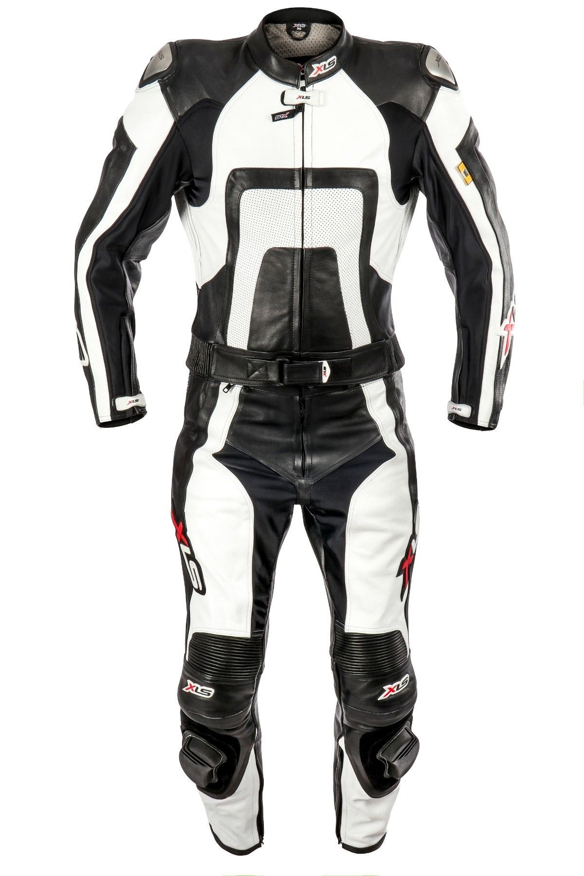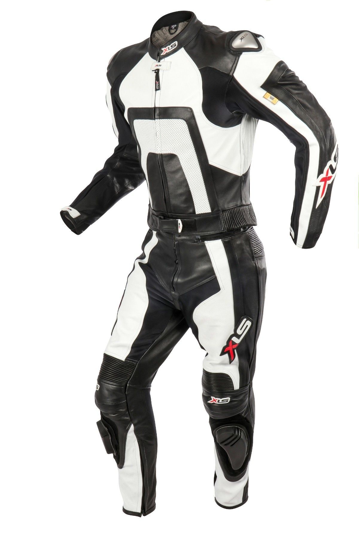 XLS Herren Lederkombi zweiteilig Motorradkombi Schwarz Weiß Zweiteiler 46 - 62