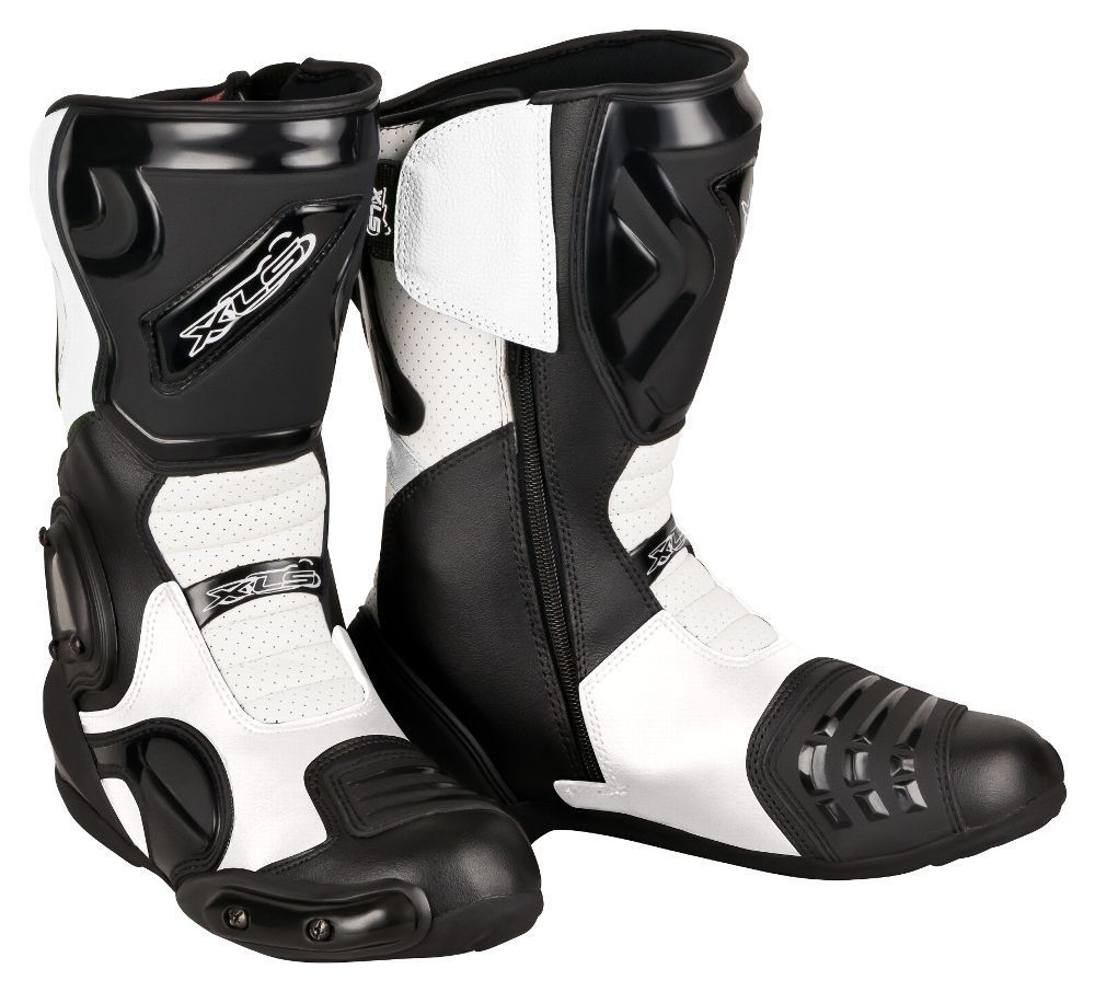 XLS Motorradstiefel Racing Boots Schwarz Weiß Echtleder Gr. 38 - 47