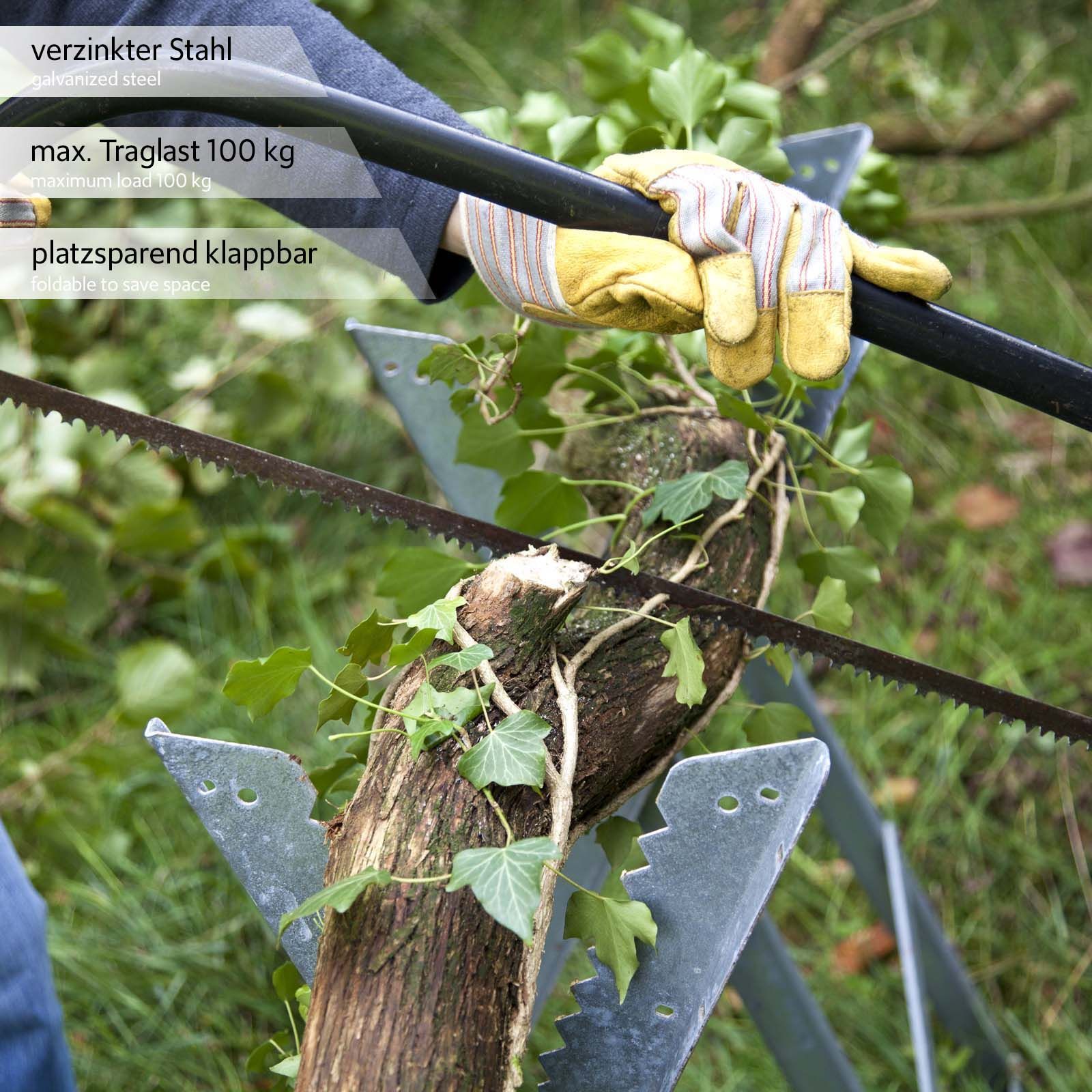 XPOtool Sägebock klappbar 3 Stammhalter verzinkt Holzsägebock Sägehilfe Zahnung