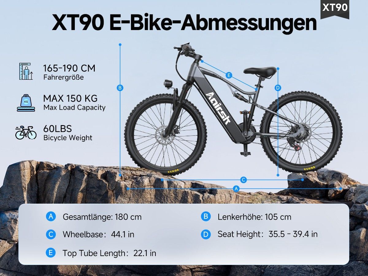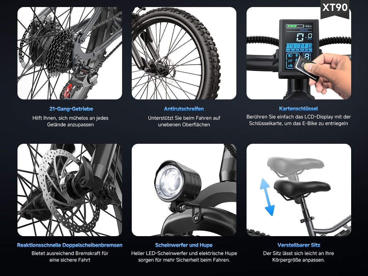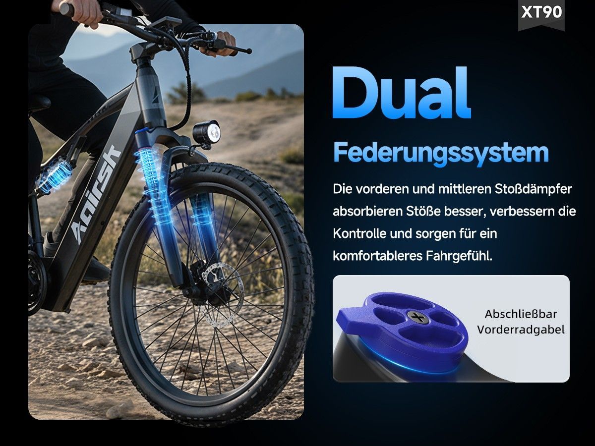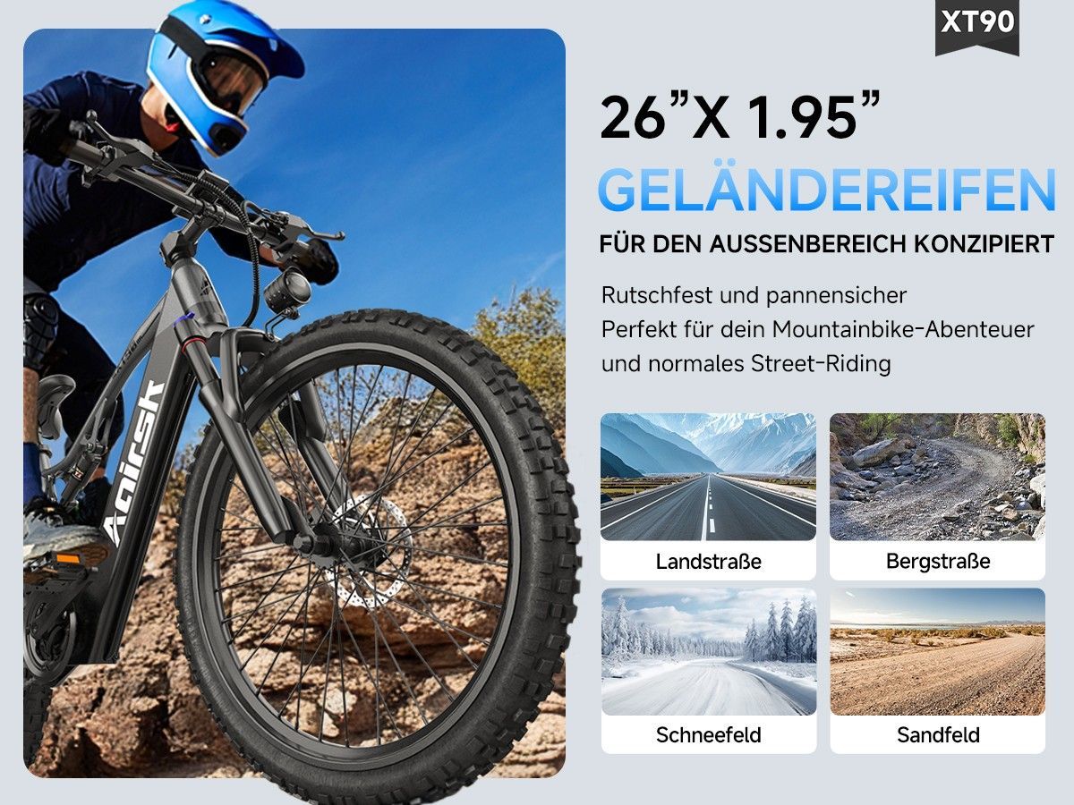 XT90 26" All-Terrain-Reifen Elektrofahrrad mit Vollfederung 48V 960Wh 75Nm Commuting