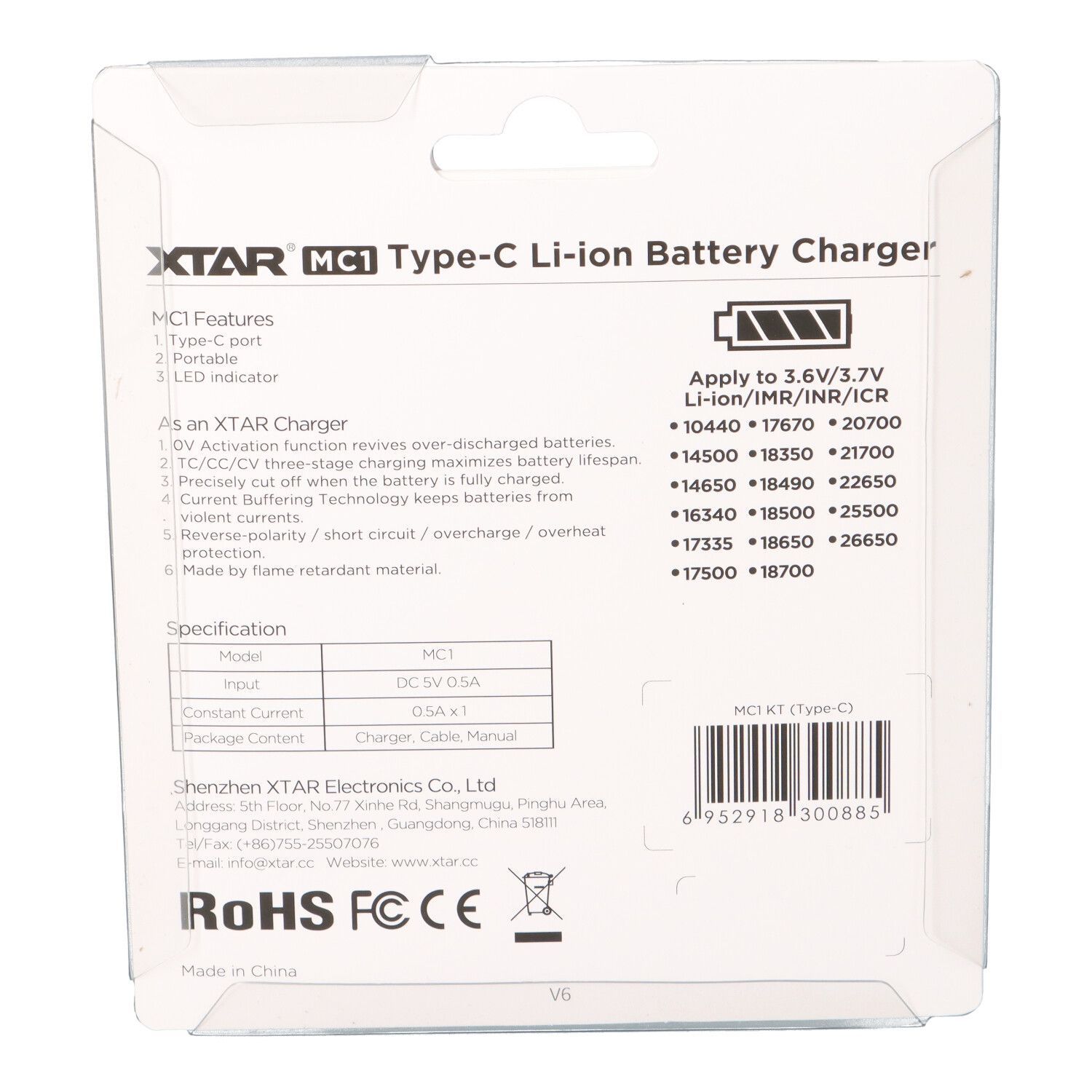XTAR XTAR MC1 USB-C-Akkuladegerät 10440 über 18650 bis 26650 Li-Ion Zellen