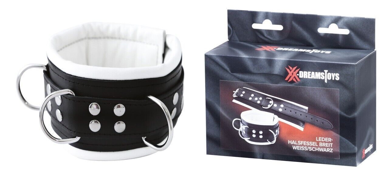 XX-DREAMSTOYS Leder-Halsfessel breit weiss/schwarz
