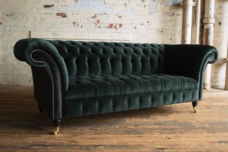 XXL Big Sofa Couch Chesterfield Polster 3 Sitzer Sitz Garnitur Leder Textil Grün