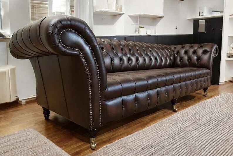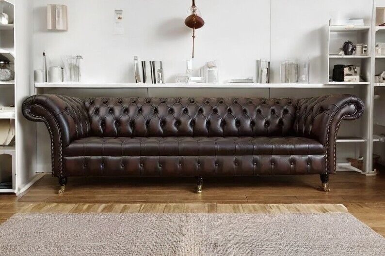 XXL Big Wohnzimmer Couch Chesterfield 4 Sitzer Sofa Couchen 100% Leder Sofort