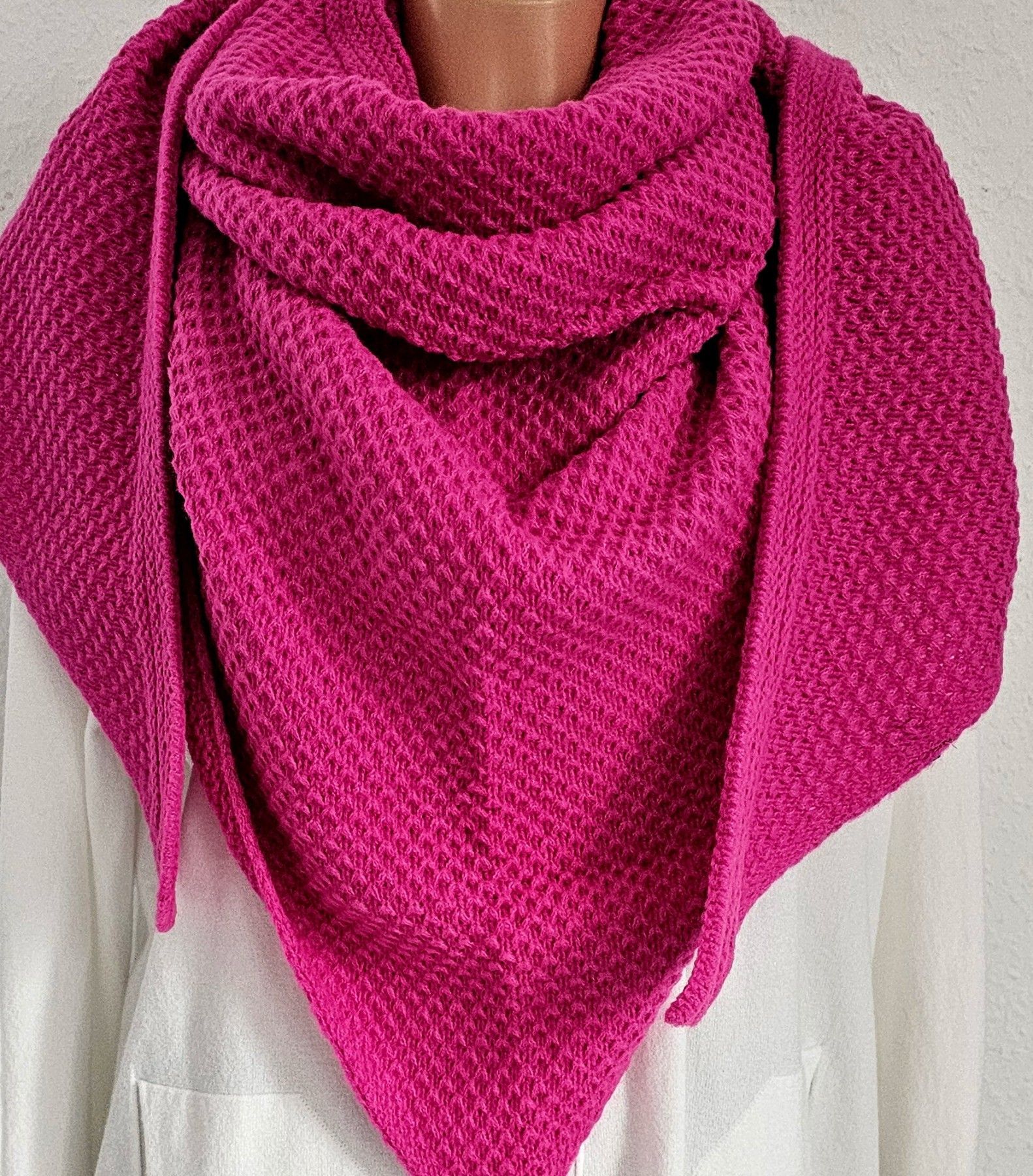XXL dickes Winter Dreieckstuch Halstuch Schal Viskose Wolle uni Strickmuster Pink