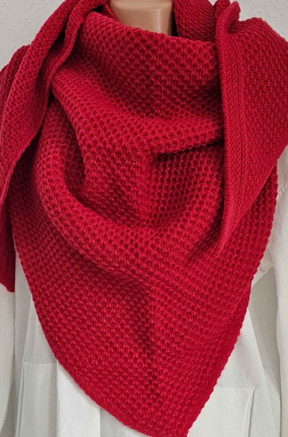 XXL dickes Winter Dreieckstuch Halstuch Schal Viskose Wolle uni Strickmuster Rot