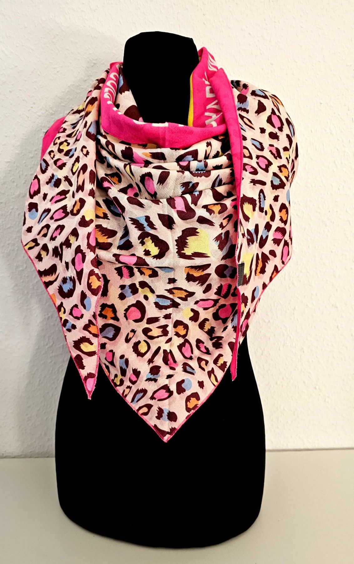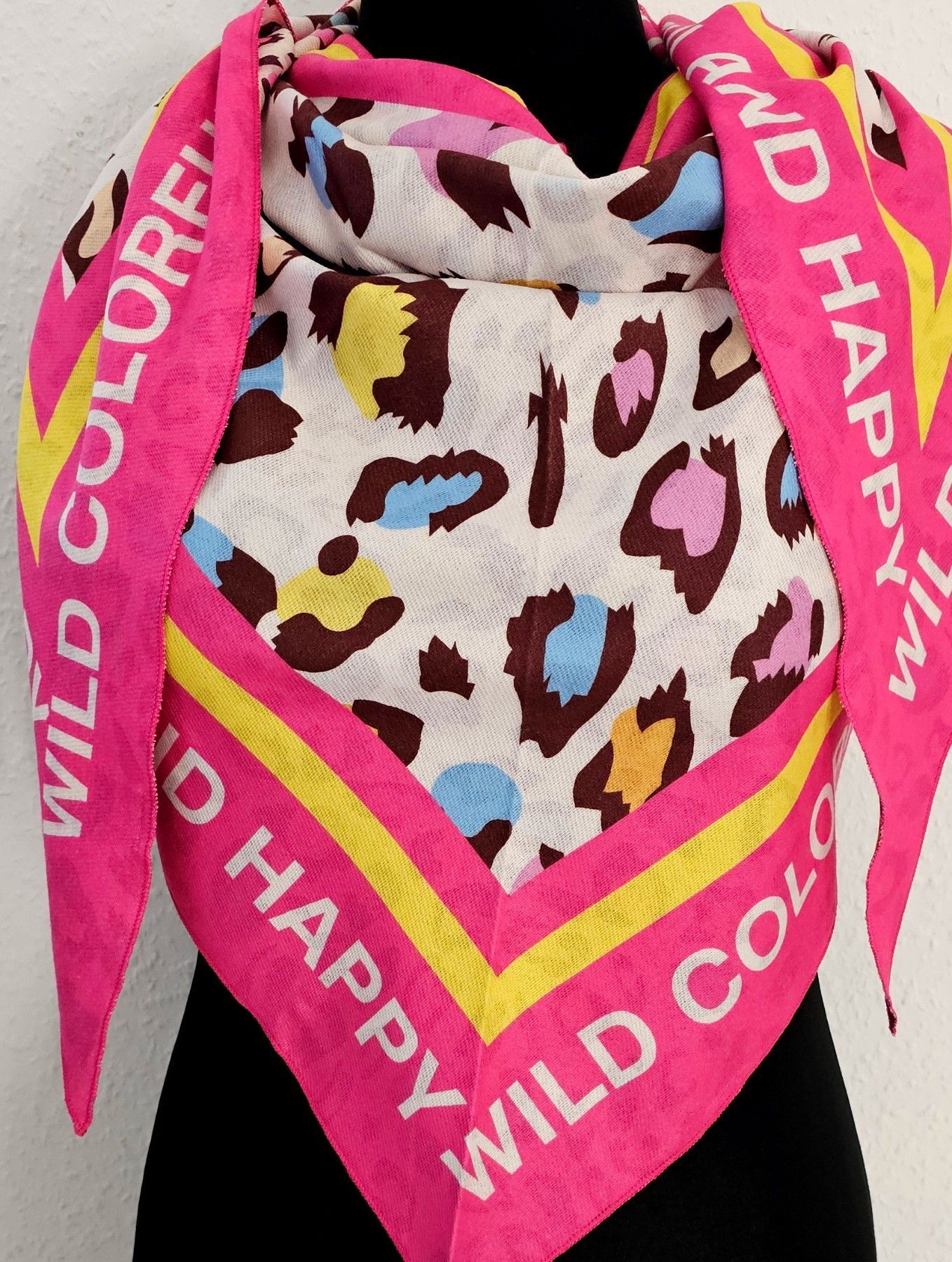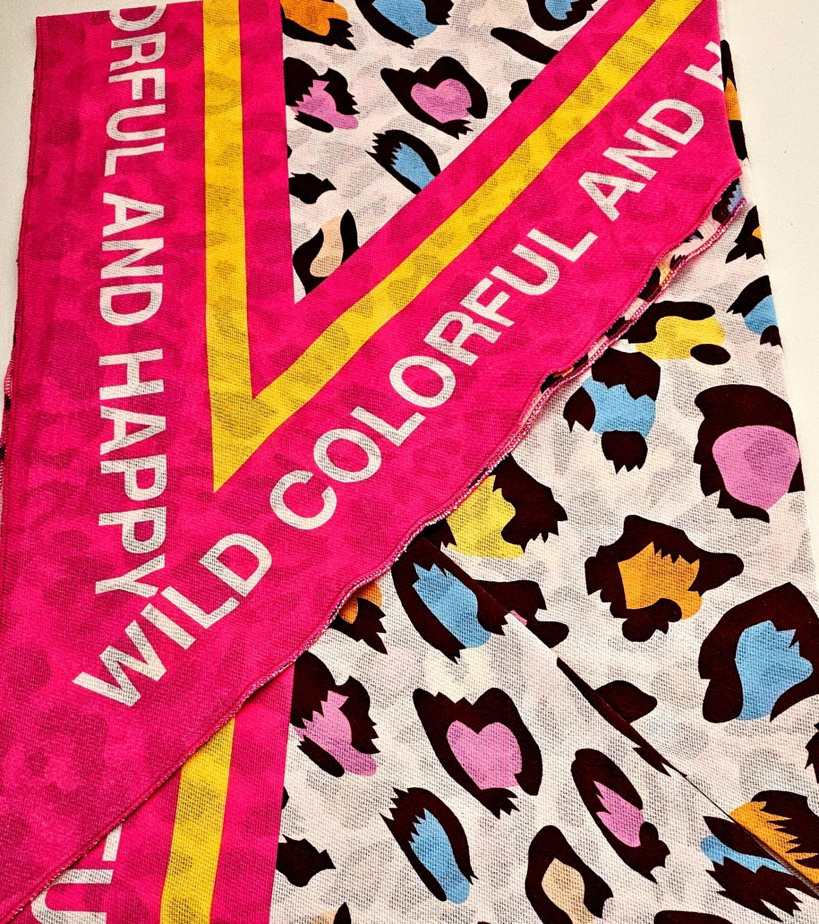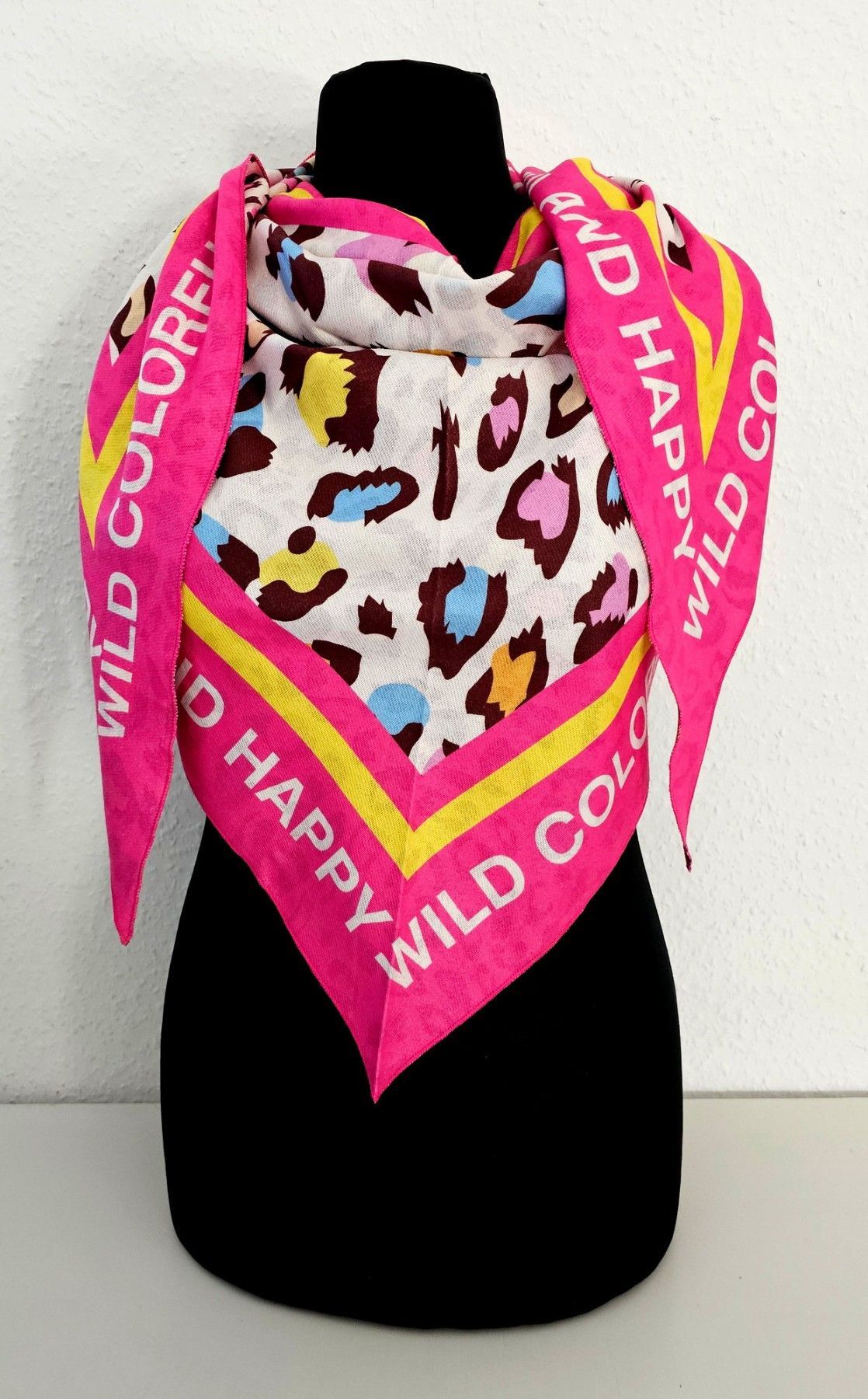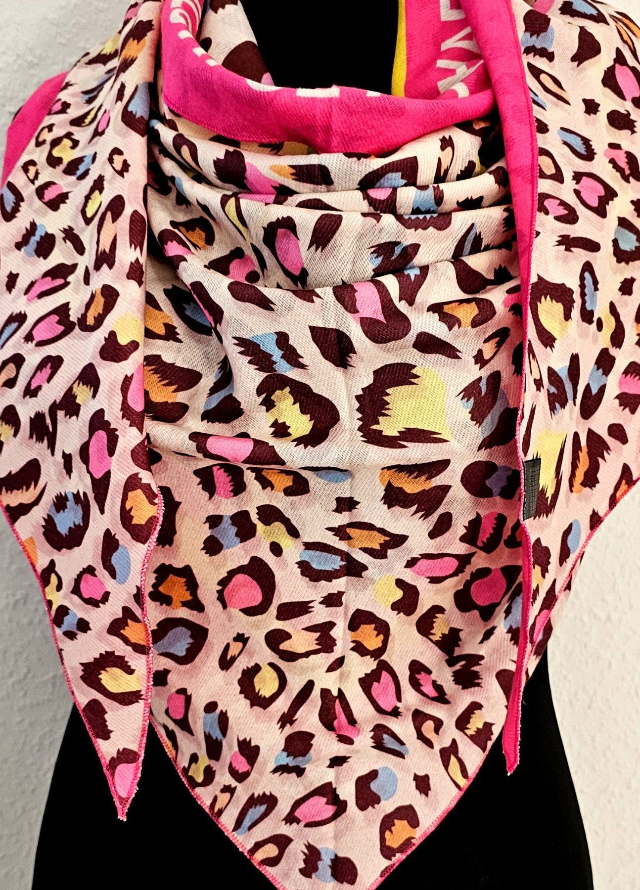 XXL Dreieckstuch Dreieckschal Tuch Wendetuch Animalprint/Schriftzug Pink/Bunt