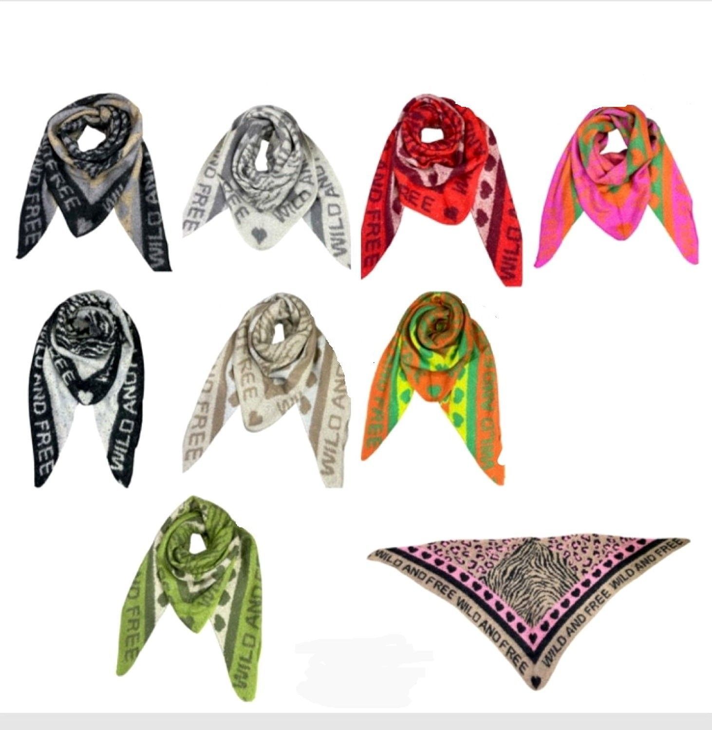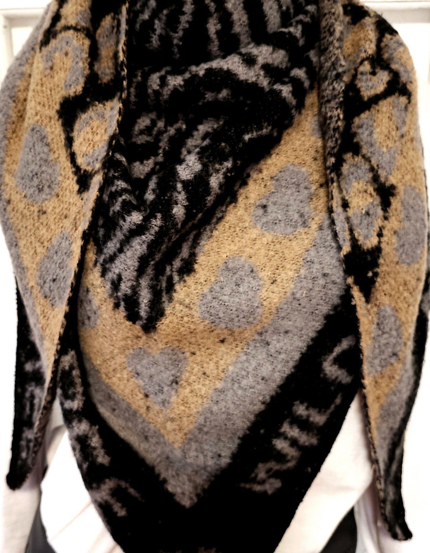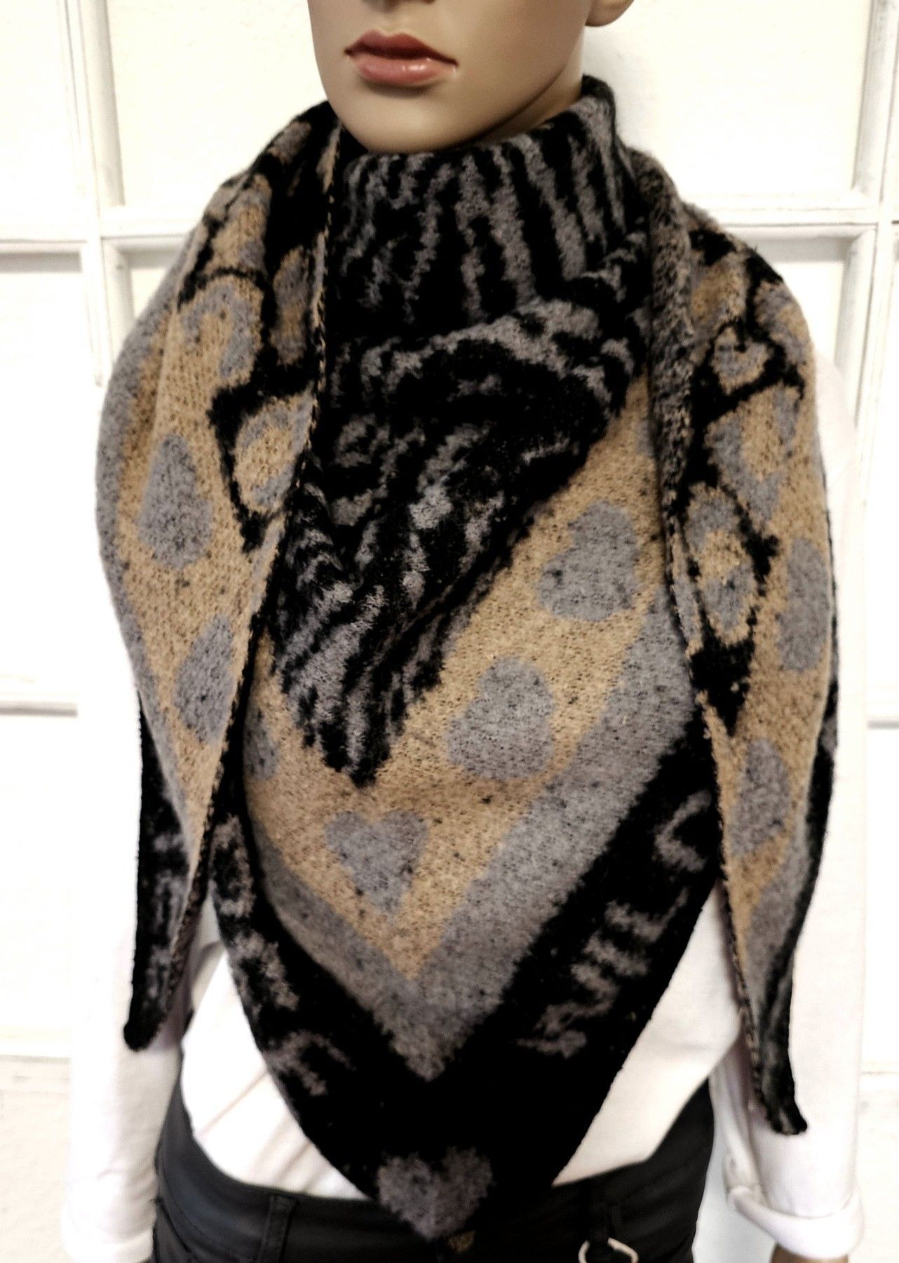 XXL Dreieckstuch Schal Viskose Wolle Animal/Herzen Schriftzug Schwarz/Grau/Taupe