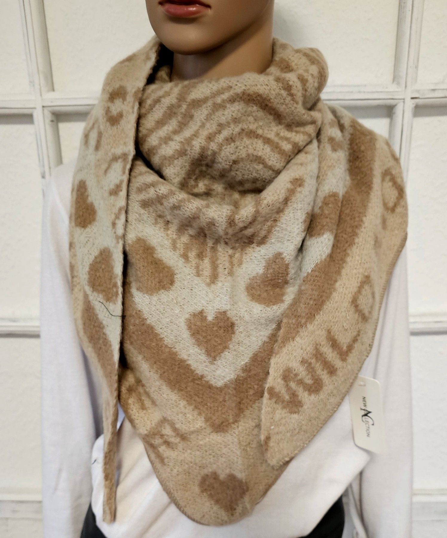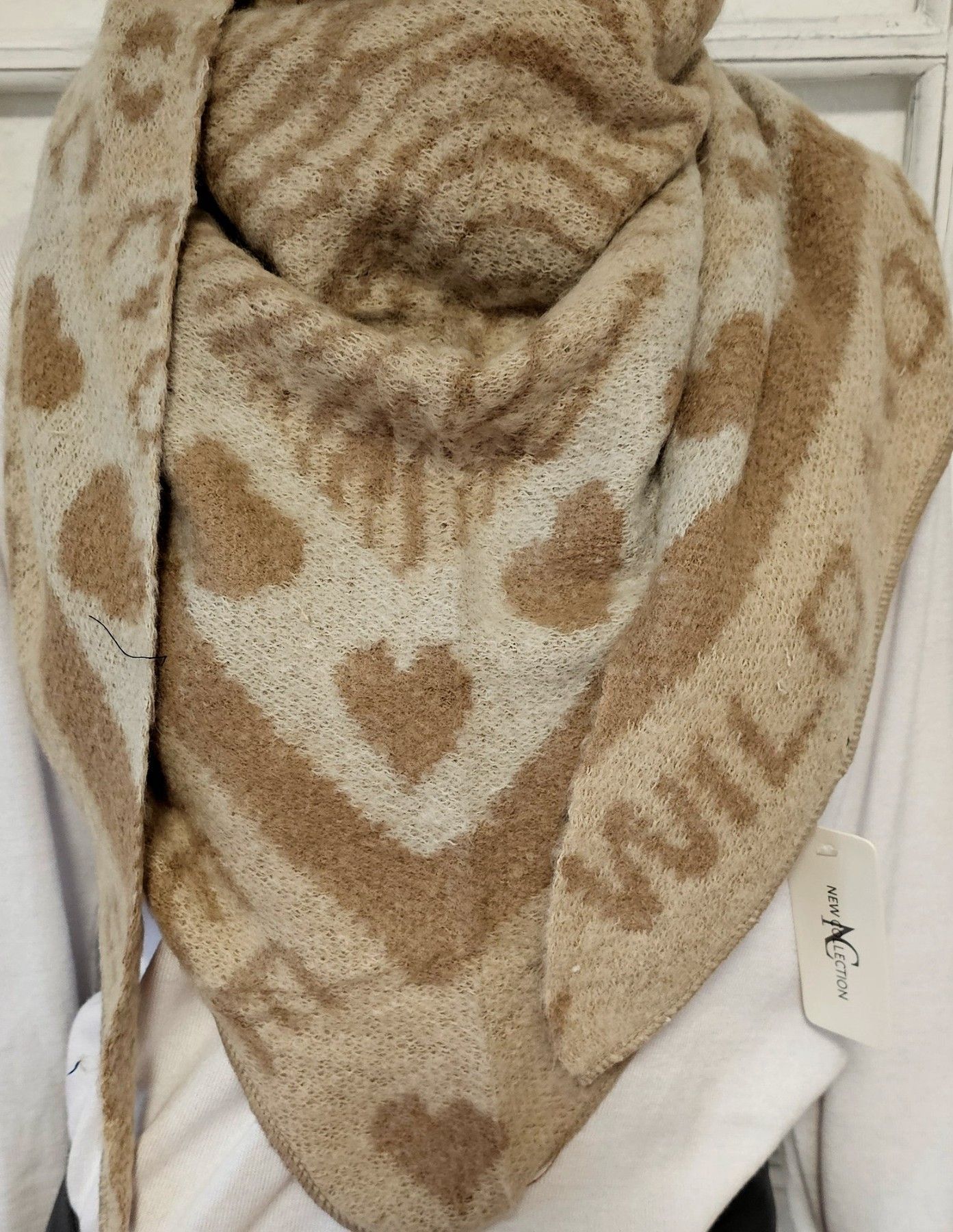 XXL Dreieckstuch Tuch Schal Viskose Wolle Animal/Herzen Schriftzug Beige/Taupe/Grau