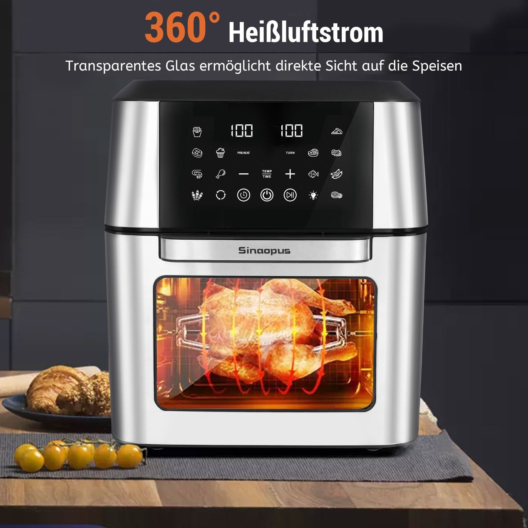 XXL Heißluftfritteuse 12L 1800W Touchpanel 12 Programme 60min Timer Airfryer 80-200°C