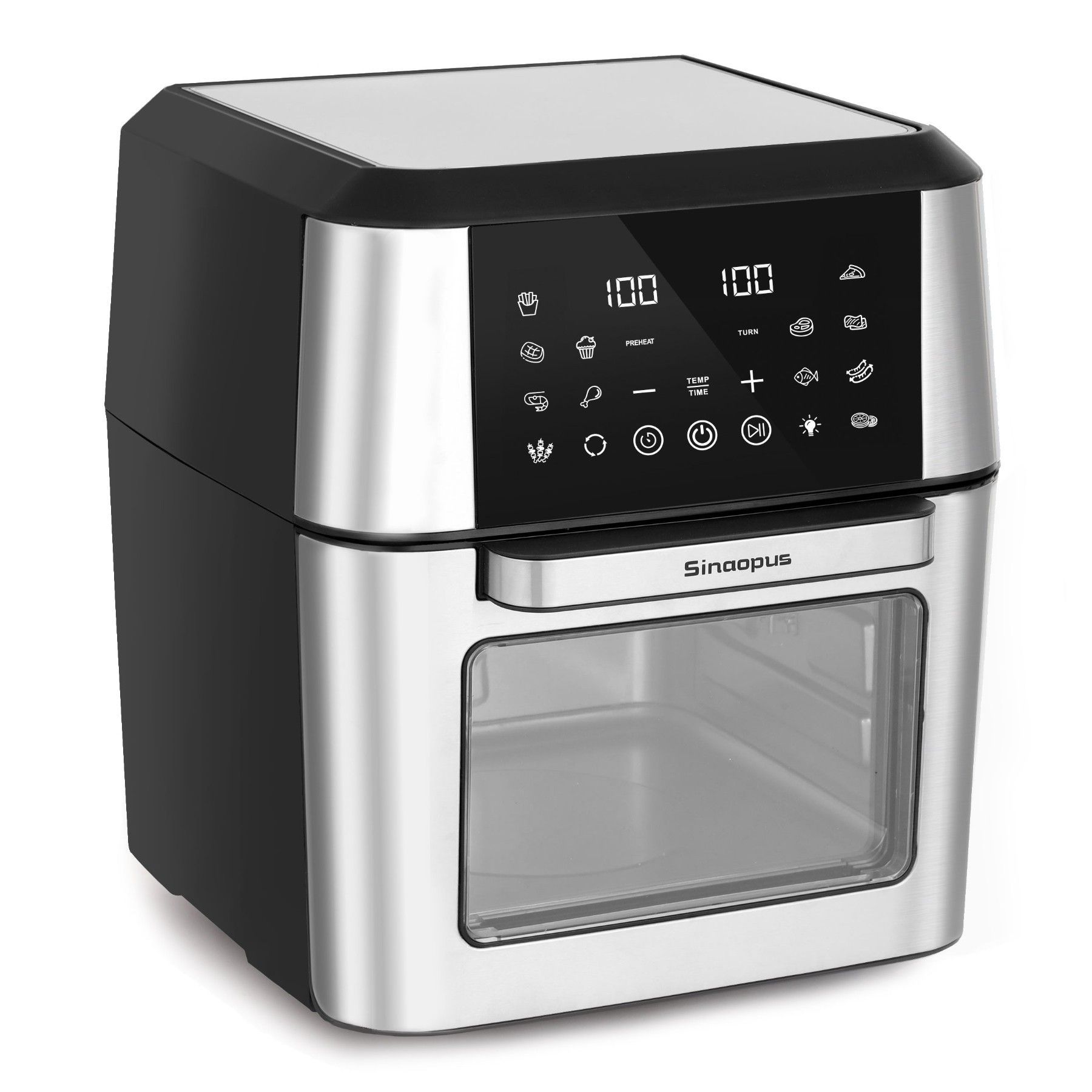 Die XXL Heißluftfritteuse von Sinaopus bietet 12 Liter Kapazität und 1800 W Leistung für fettarme Mahlzeiten mit bis zu 85 % weniger Fett. Das intelligente Touchpanel steuert 12 Automatikprogramme – von Pommes über Steak bis Kuchen. Dank 360° Heißluftsystem, 80–200 °C Temperaturbereich und 60?Minuten?Timer gelingen Gerichte gleichmäßig. Die transparente Glasscheibe ermöglicht Sichtkontrolle, der langlebige Metallinnenraum lässt sich leicht reinigen.