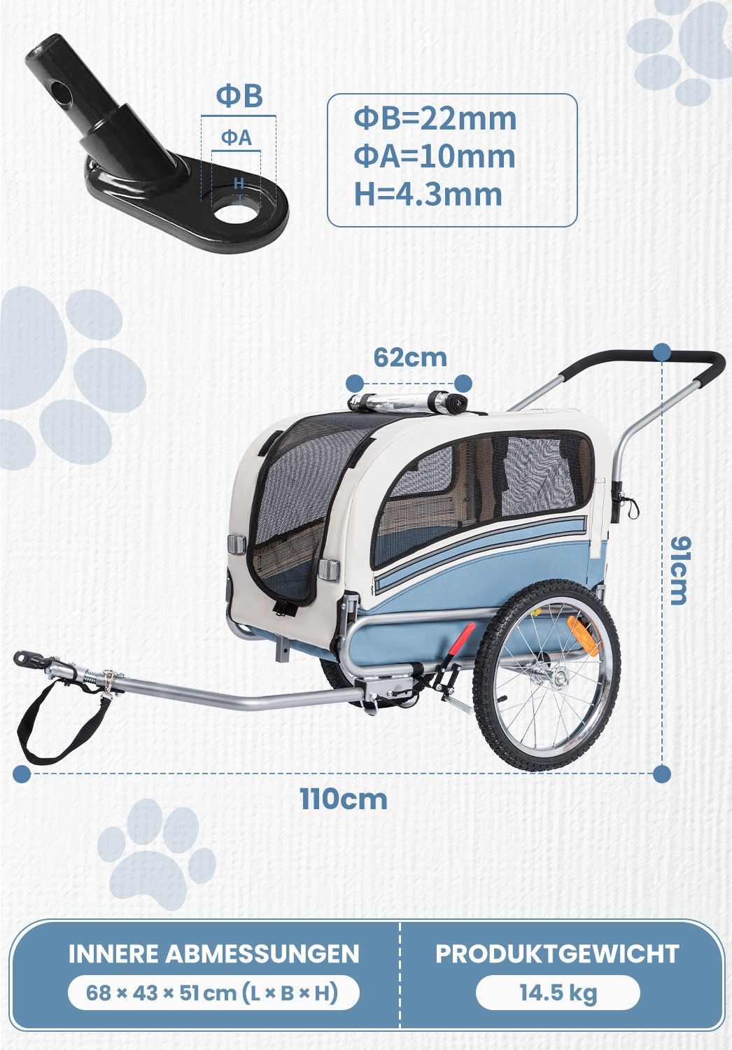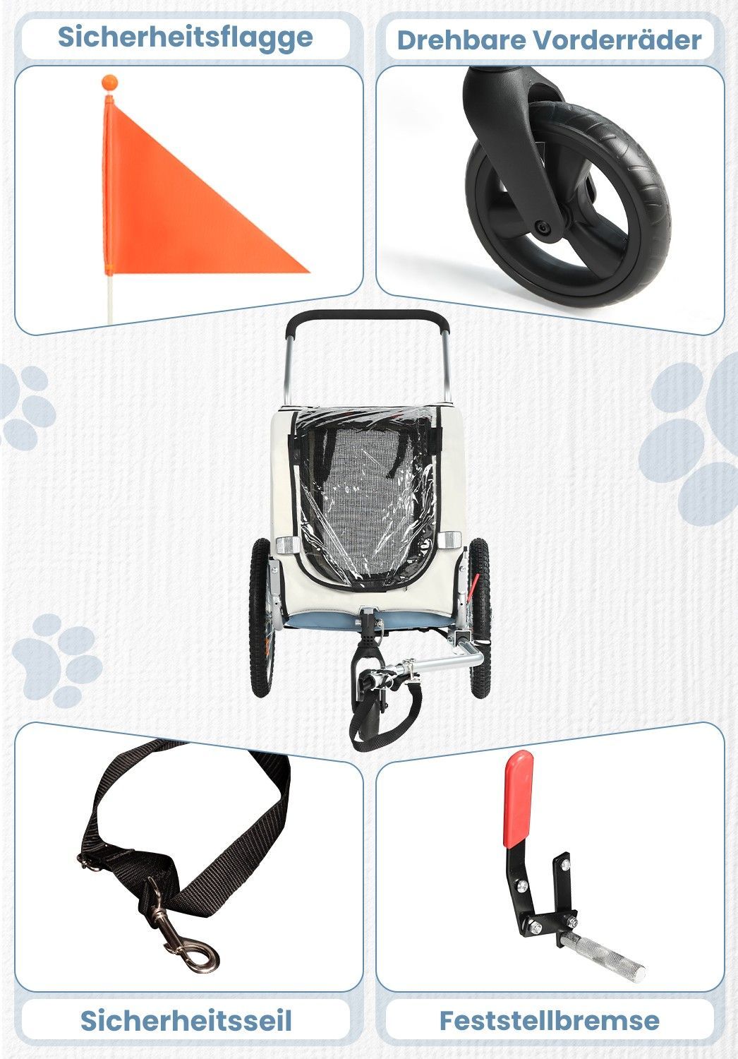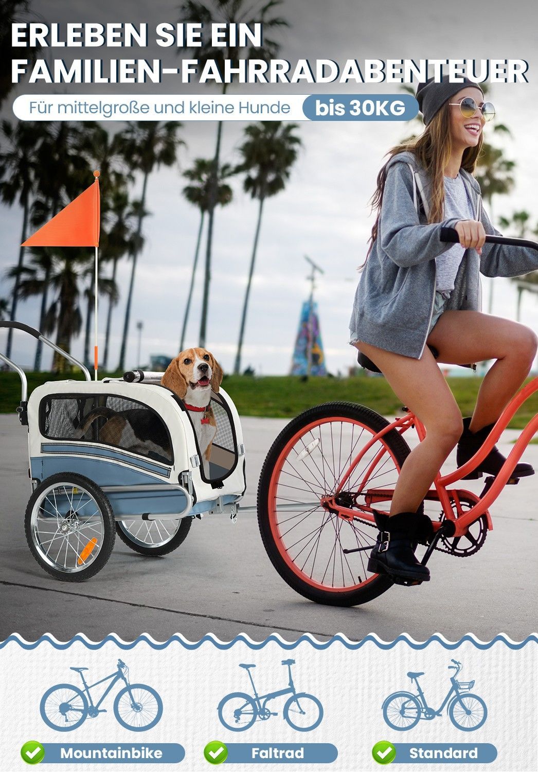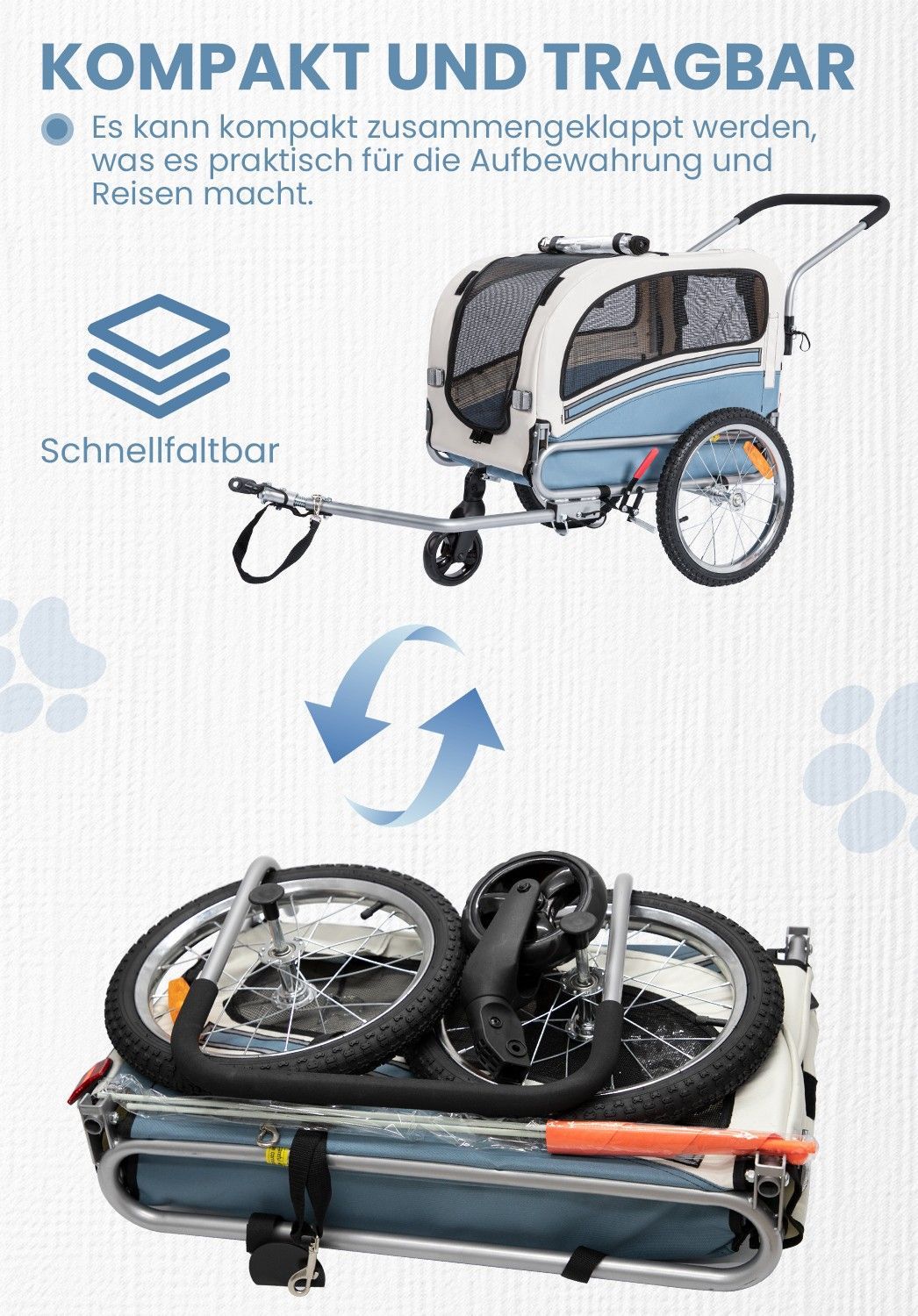 XXL Hundeanhänger 2-in-1 mit Parkbremse - bis 40kg, faltbar und sicher