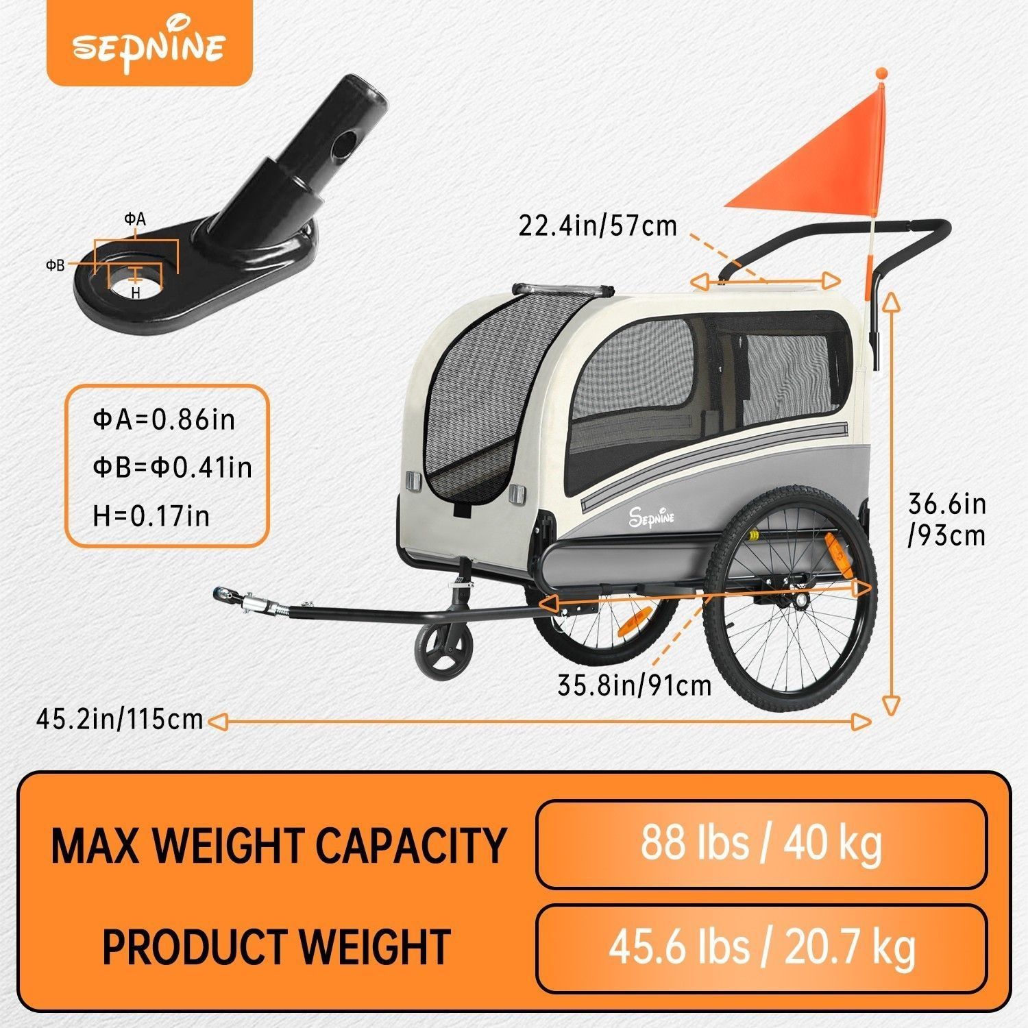 XXL Hundefahrradanhänger mit Universal-Fahrradhaken, Sicherungsseil, Tragkraft 40 kg