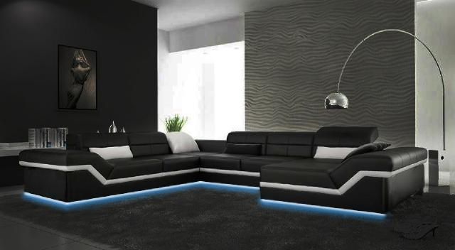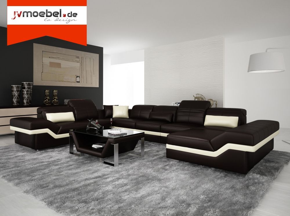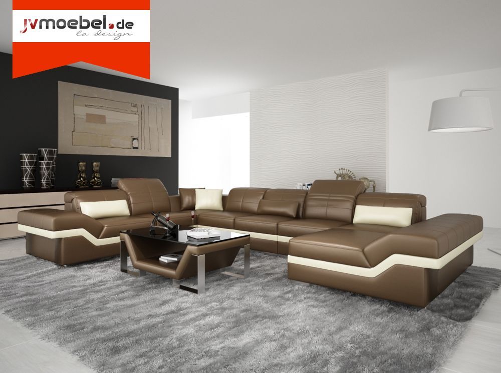 XXL Ledersofa mit USB, ohnlandschaft Ecksofa Design Sofa Garnitur Eckcouch Neu